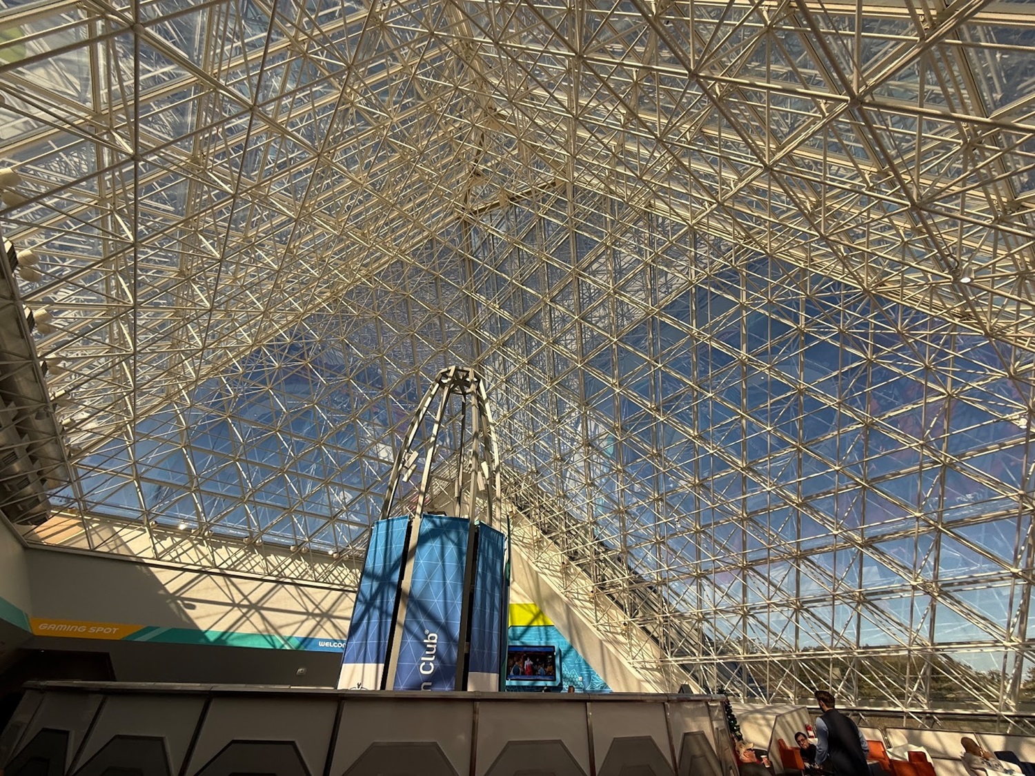 The main selling point of this lounge for many is the otherwise unobtainable views from within the iconic glass pyramids of Journey into Imagination. Only Disney Vacation Club (DVC) members and their guests can access this location.