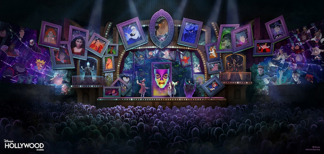 Alongside new concept art for Disney Starlight: Dream the Night Away coming to the Magic Kingdom, Disney has also shared updated concept art for the new Disney Villains show coming to Disney’s Hollywood Studios this summer.