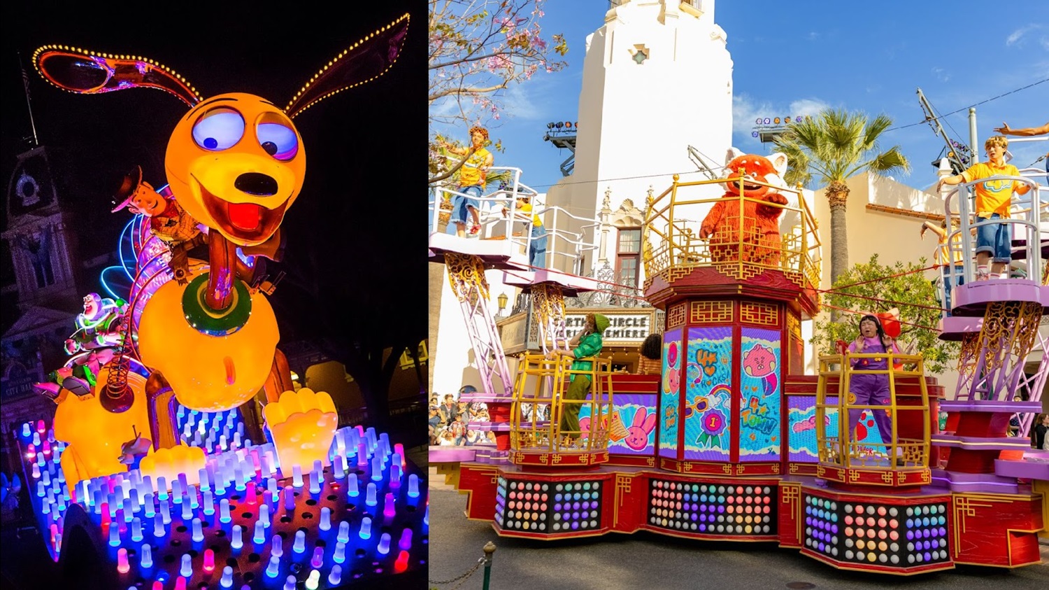 - This delightful daytime parade is filled with incredible music, dynamic and colorful floats, and nearly 30 favorite characters from Pixar Animation Studios films, including Luca, Turning Red, Up, and more.