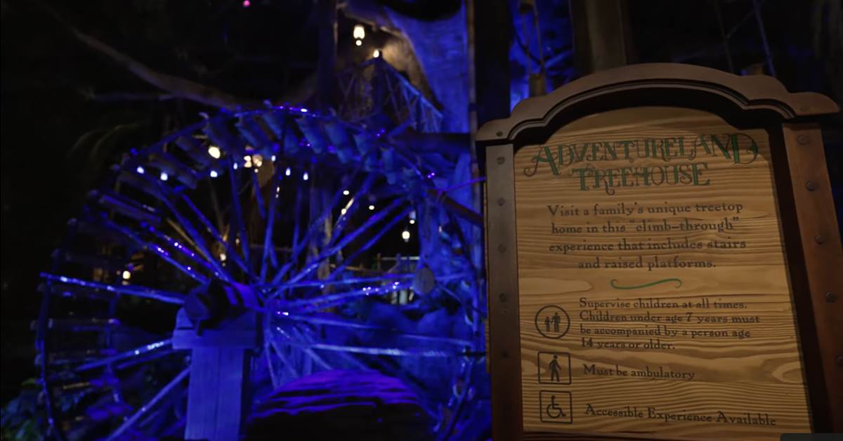 - The Adventureland Treehouse will showcase wonderous new environments created amongst the branches of a giant tree on the shores of the Jungle River, where guests will once again enter by the giant waterwheel and follow the wood rope stairways up, up, up into the boughs.