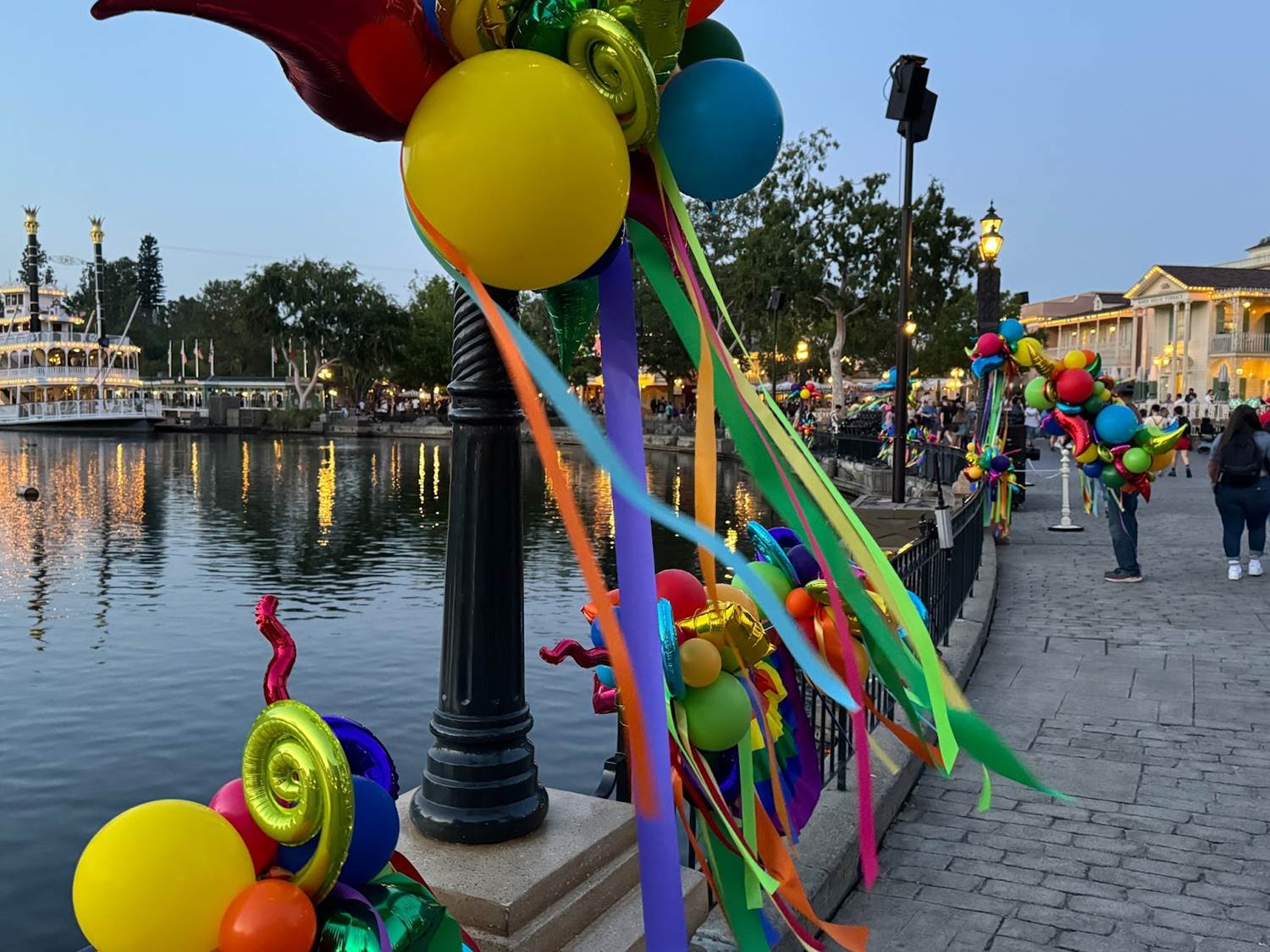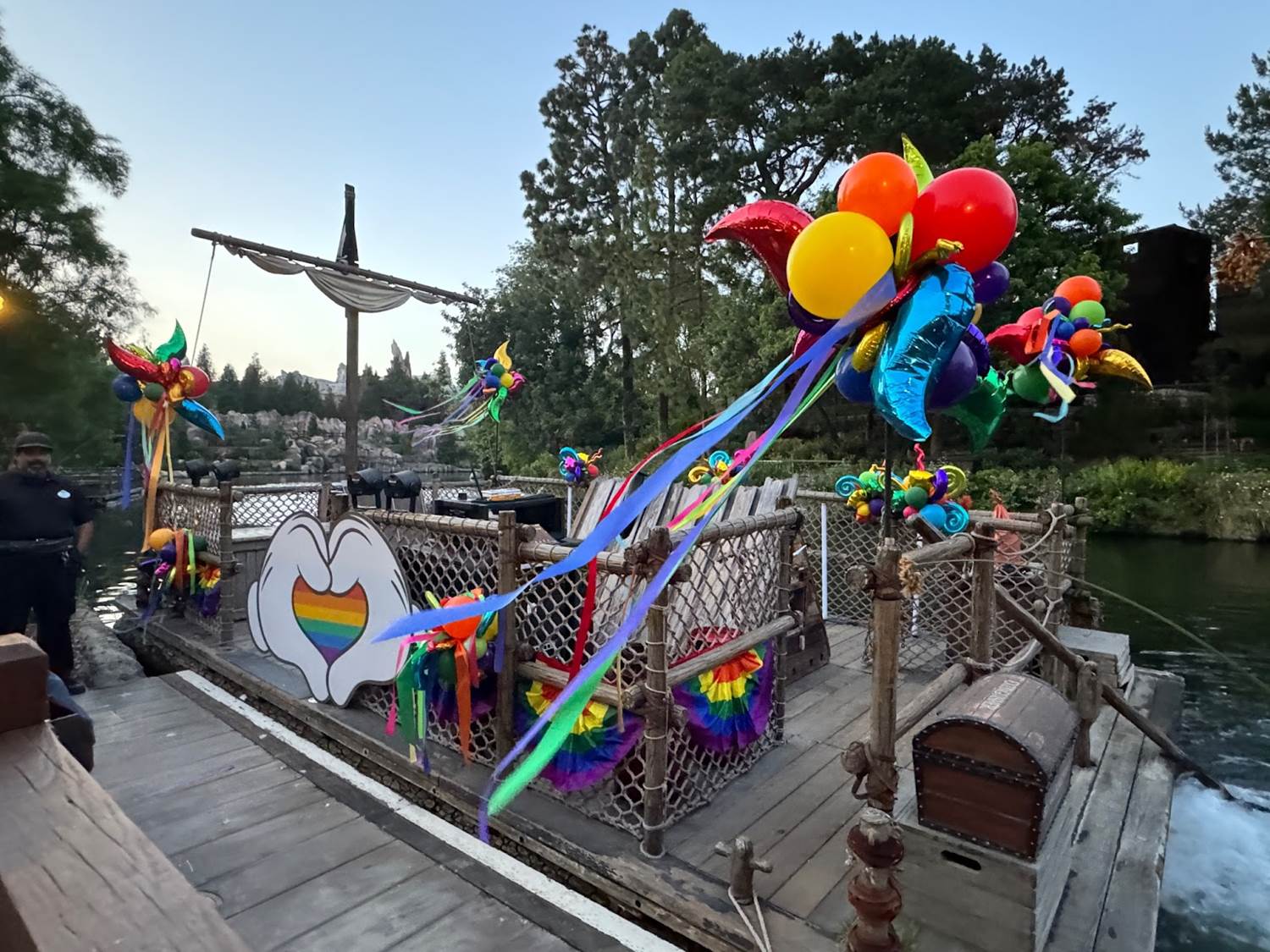 Rainbow colored balloons and bunting decorated the shores of the Rivers of America, which also served as home to a fun dance party along the water’s edge.