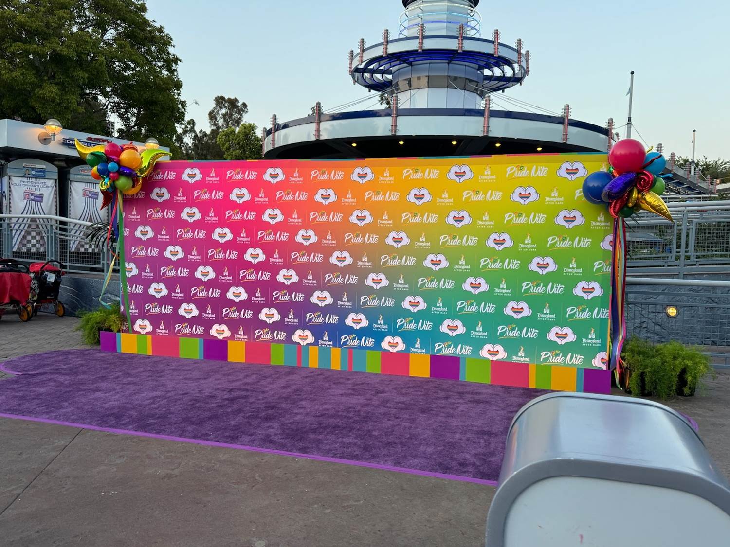 Back over in Tomorrowland, guests could pose with this colorful Pride Nite step-and-repeat.