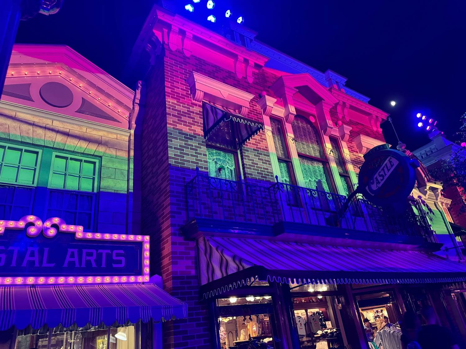 Various icons throughout the park, including the buildings of Main Street U.S.A., Sleeping Beauty Castle and the Matterhorn, were lit up in rainbow colors.