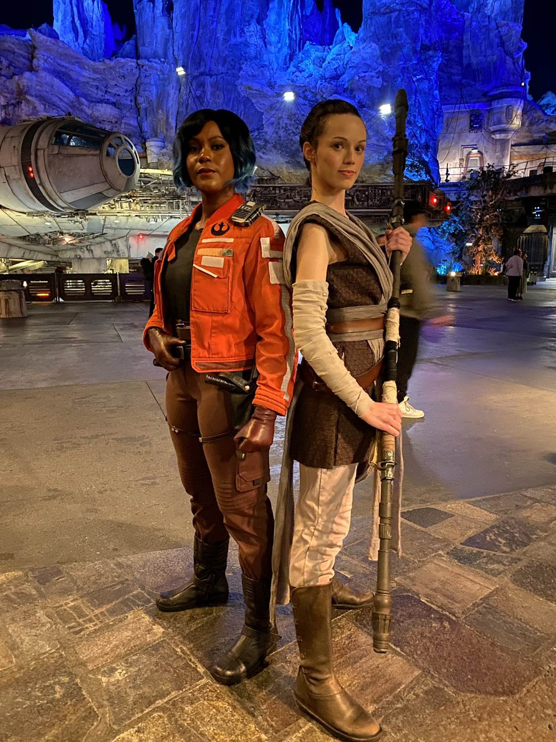 Although not advertised as available for meet-and-greets, Rey and Vi Moradi are part of the “Lightsaber Meet-Up" (more details below), and you may find them roaming around between show times.