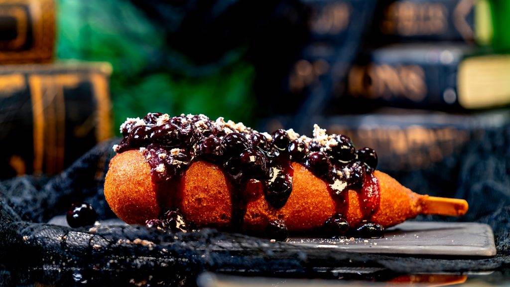 - Blueberry Corn Dog: Hand-dipped corn dog topped with blueberry compote and bacon powdered sugar (New)