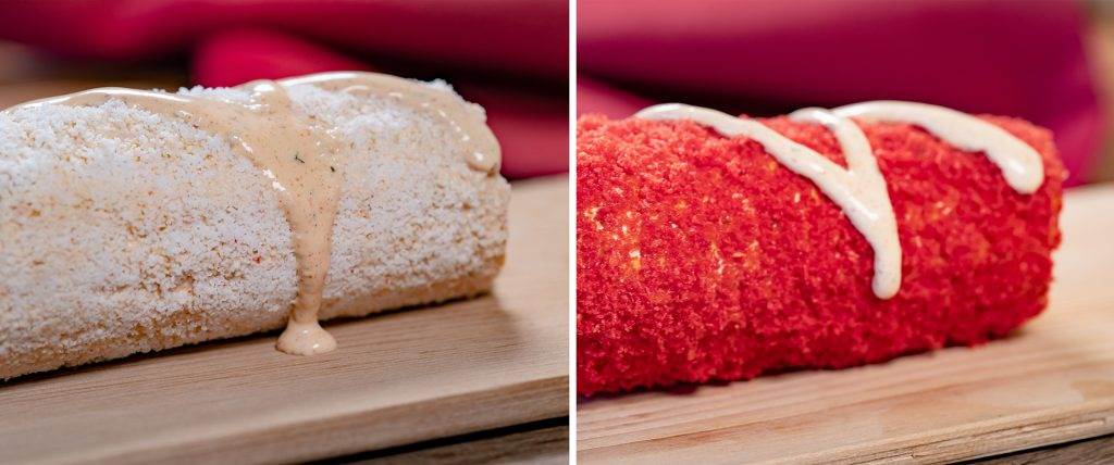 - Spiced Bundt Cake: Spiced cake filled with cream cheese frosting and topped with purple glaze, sprinkles, and spiced mousse with a Mickey chocolate decoration (New)
