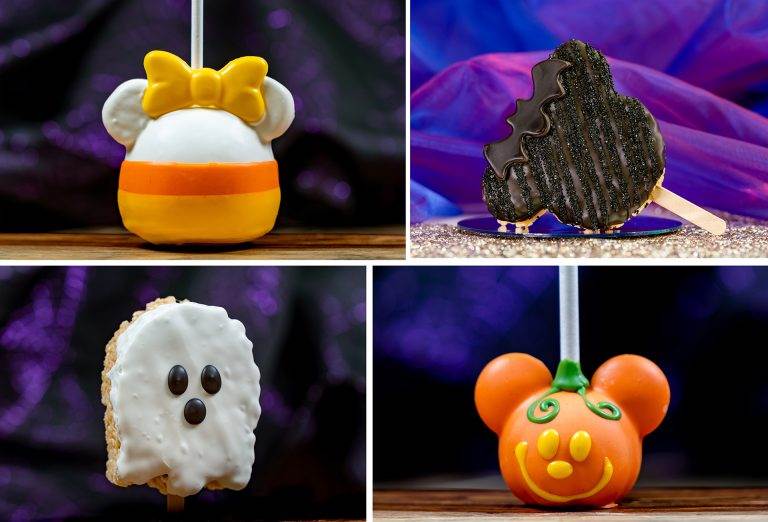 - Black Bat Minnie Caramel Apple: Granny Smith apple dipped in caramel and decorated with dark chocolate-covered marshmallow ears, a black sugar dress, black M&M’S Milk Chocolate Candies, and a black dark chocolate bat bow (Available Aug. 23 through Oct. 31)