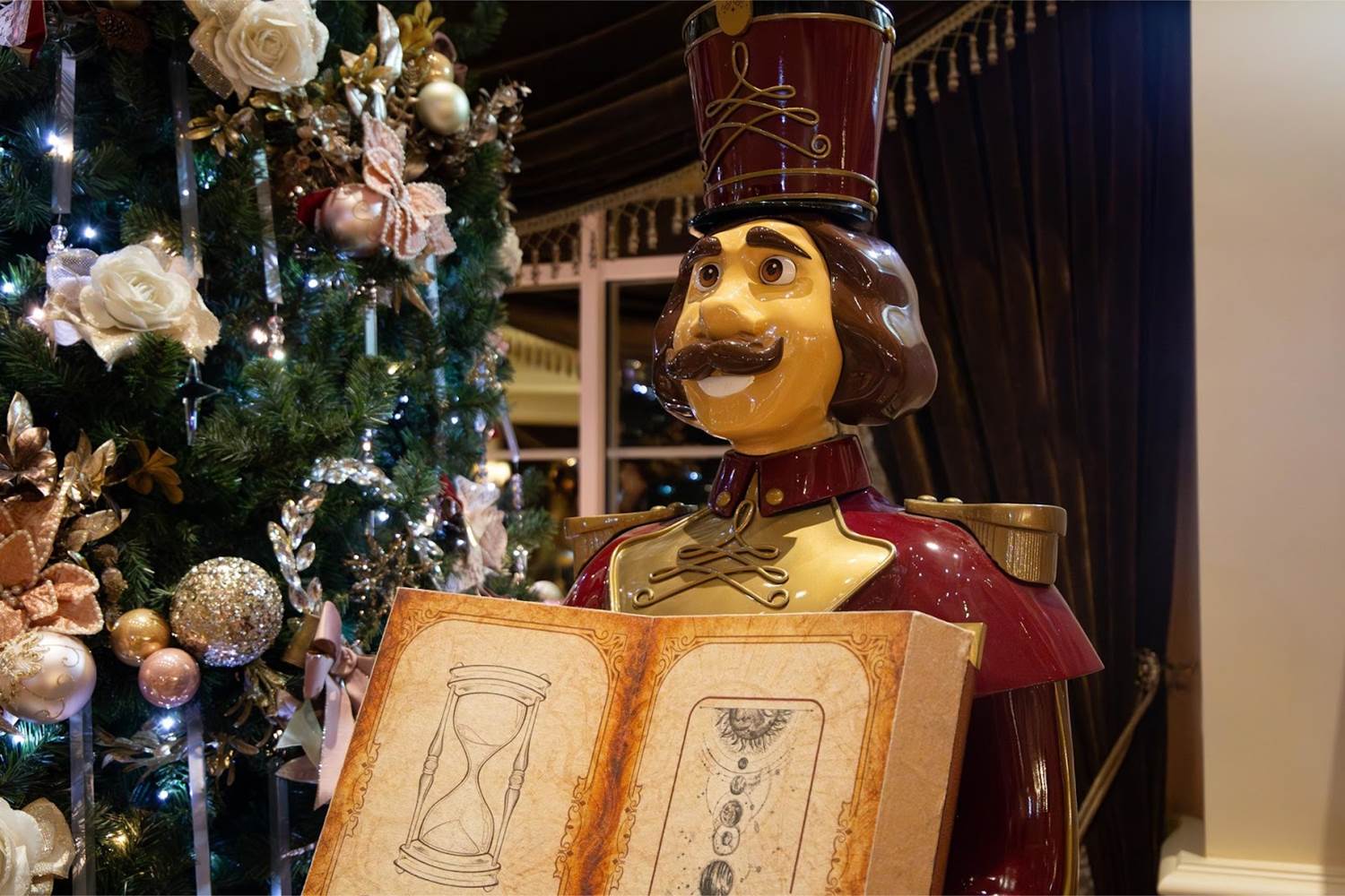 - In the lobby, guests can admire The Book of Time, which is held by a Guard of the Winter Holidays beside the Christmas tree, while two other Guards stand watch by the grand staircase.