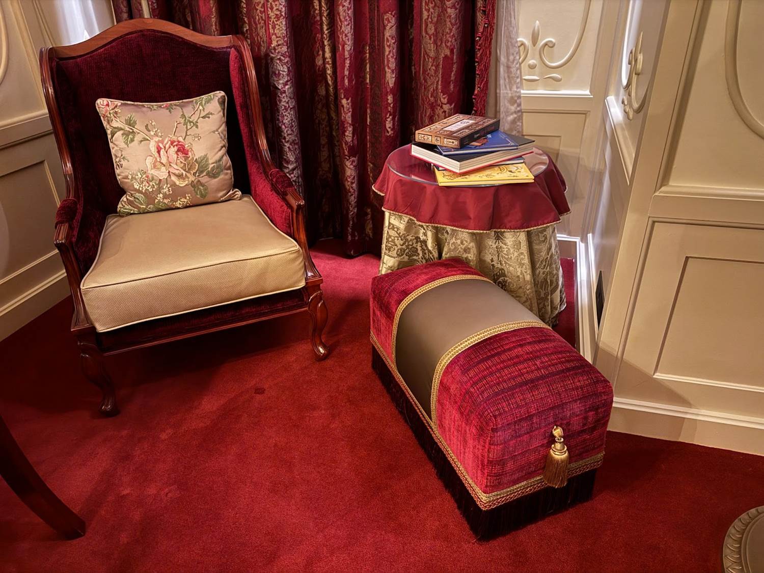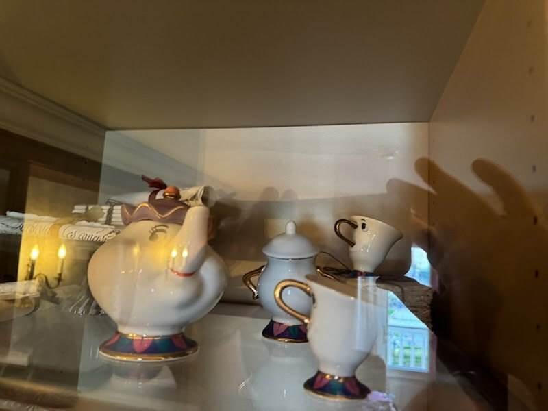 The footstool is among my favorite little touches in the Beauty and the Beast suite. I appreciated how the design team didn’t only opt for overt decor like putting a Mrs. Potts & Chip tea set on display (pictured below) but also subtleties for the superfan to discover.