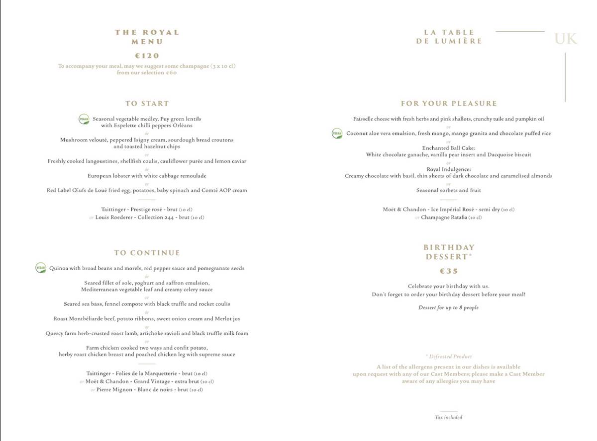La Table de Lumière, inspired by the Hall of Mirrors, aims to be the finest French cuisine in all of Disneyland Paris Resort. Princesses and their princes will also be available for character dining.