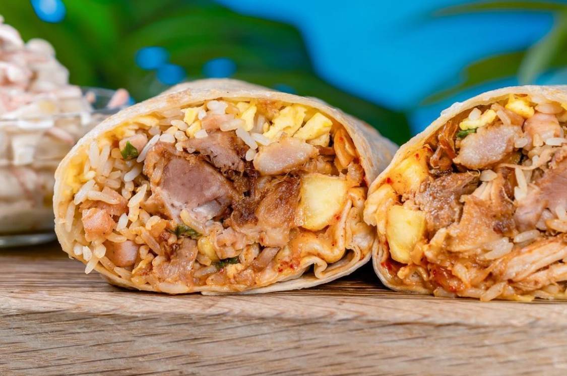 - Boat Snack Burrito: Kālua-style pork with spiced ham and egg fried rice, spicy cabbage slaw and charred pineapple, served with Hawaiian mac salad available at Studio Catering Truck and Hollywood Lounge