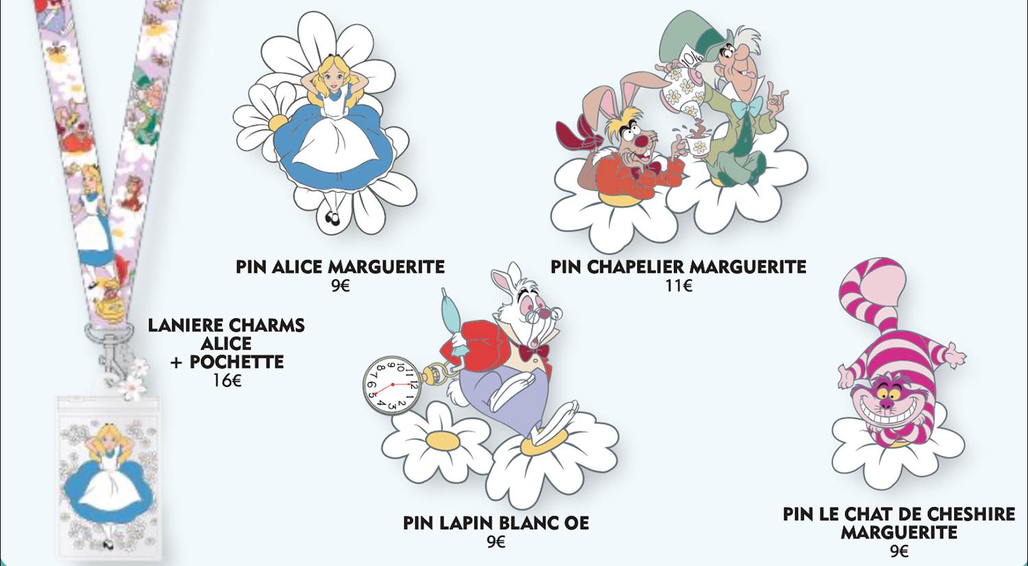 - Alice in Wonderland fans will want to mark their calendars for March 9th. Options include themed pins with Alice, Mad Hatter with March Hare, Cheshire Cat, and White Rabbit. There is also a matching lanyard available for Alice in Wonderland.