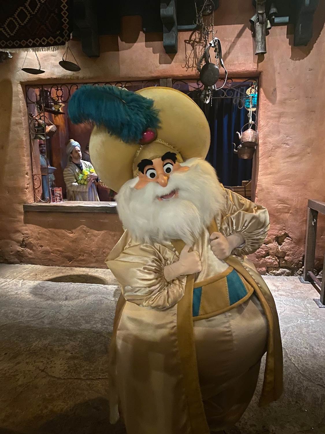 Elsewhere in the land, Captain Jack Sparrow was spotted roaming the area around Pirates of the Caribbean, and the Sultan made an appearance in Agrabah Café, where eager marketplace sellers were enticing guests to “buy" their goods.