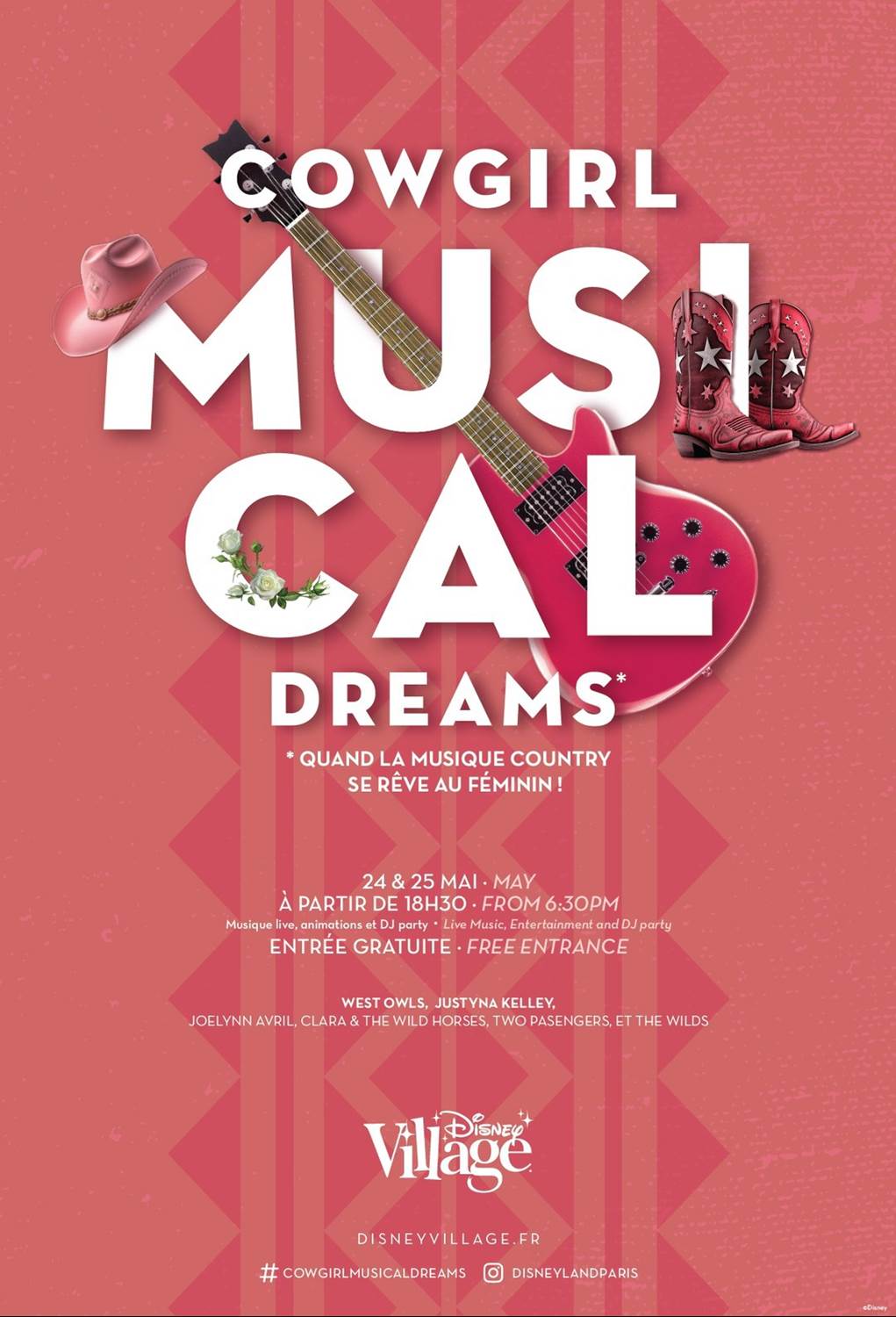 - On May 24th and 25th, Disney Village will be hosting “Cowgirl Musical Dreams," a Nashville-inspired weekend of music, dancing, and fun.