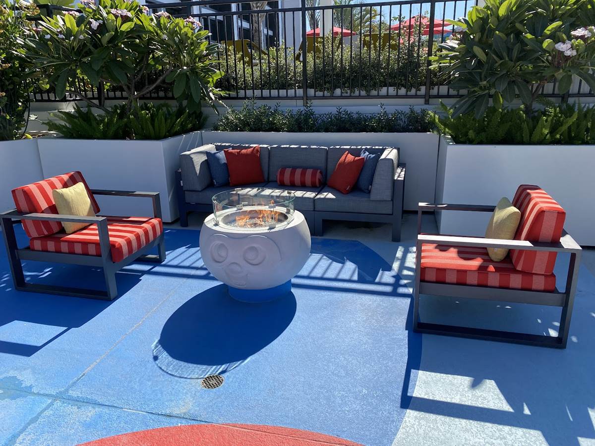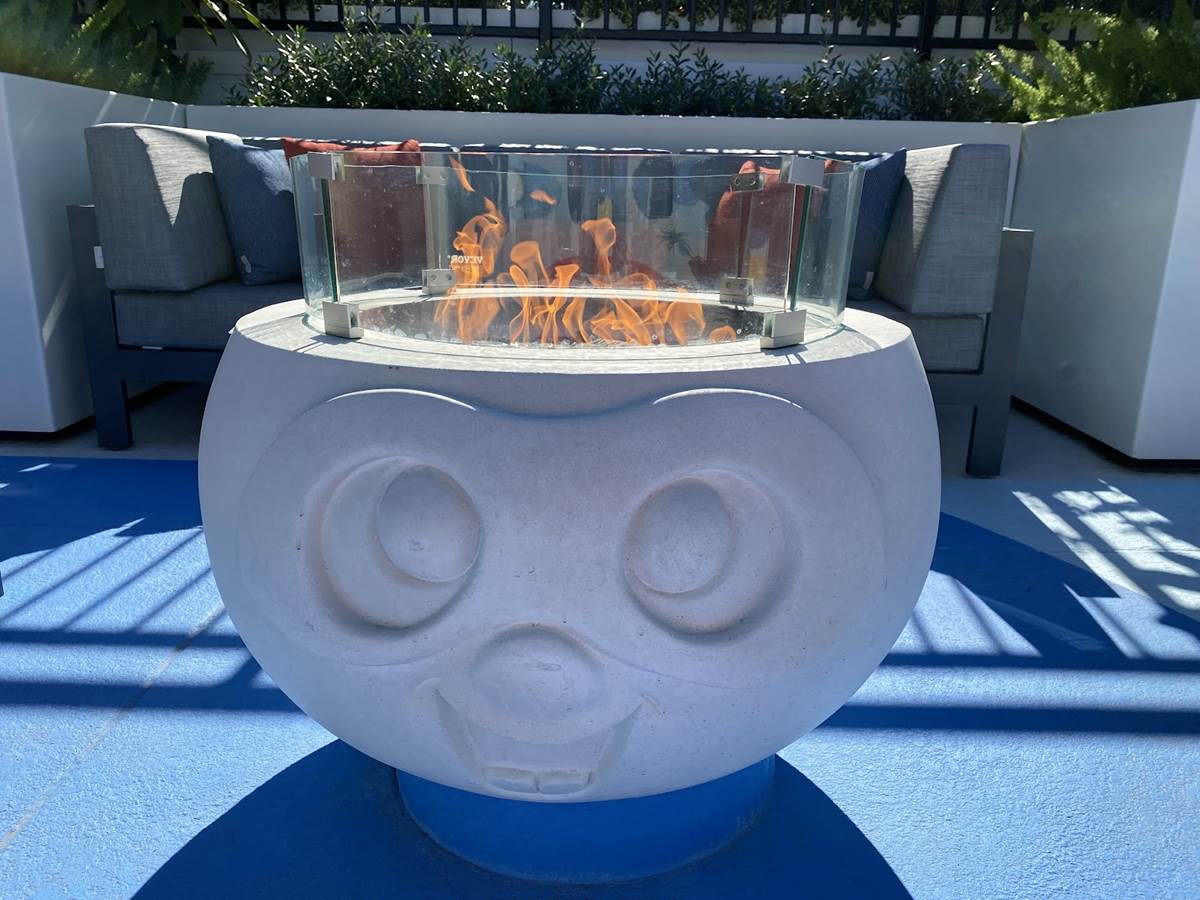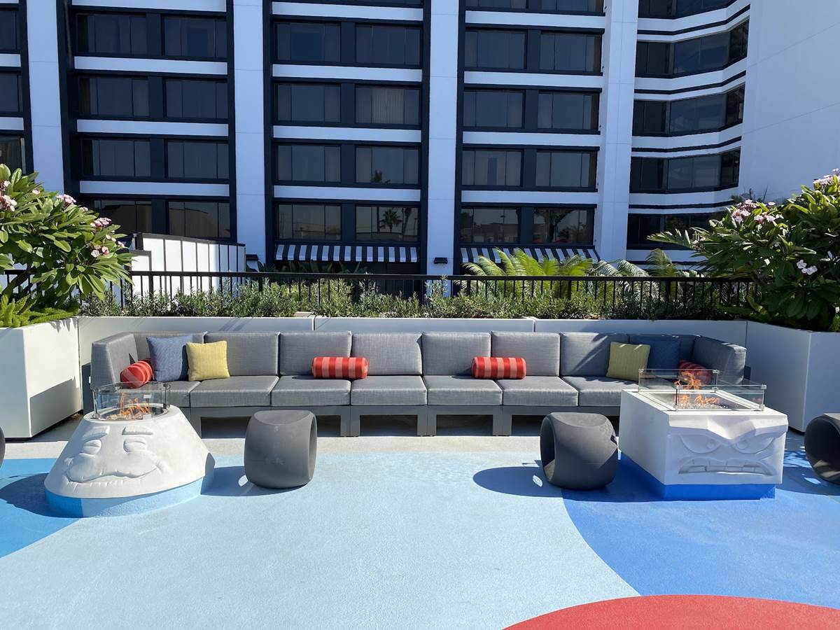 Starting up on the pool deck, guests can already enjoy the hotel’s new Finding Nemo-themed splash pad and pool area, which recently opened for guests of Disney’s Paradise Pier Hotel. This rooftop pool area features Pixel Pool, which is lined with relaxing loungers, along with Nemo’s Cove pop-jet splash pad, and Crush’s Surfin’ Slide, a 186-foot-long water slide inspired by the coolest sea turtle in the ocean. An adjacent play court and pool bar will open later this fall. Right now, guests can also gather with friends on comfy couches surrounding fire pits inspired by some of Pixar’s more hotheaded characters, including Jack-Jack from The Incredibles, Anger from Inside Out, Uku from the short Lava, and Ember from Elemental.