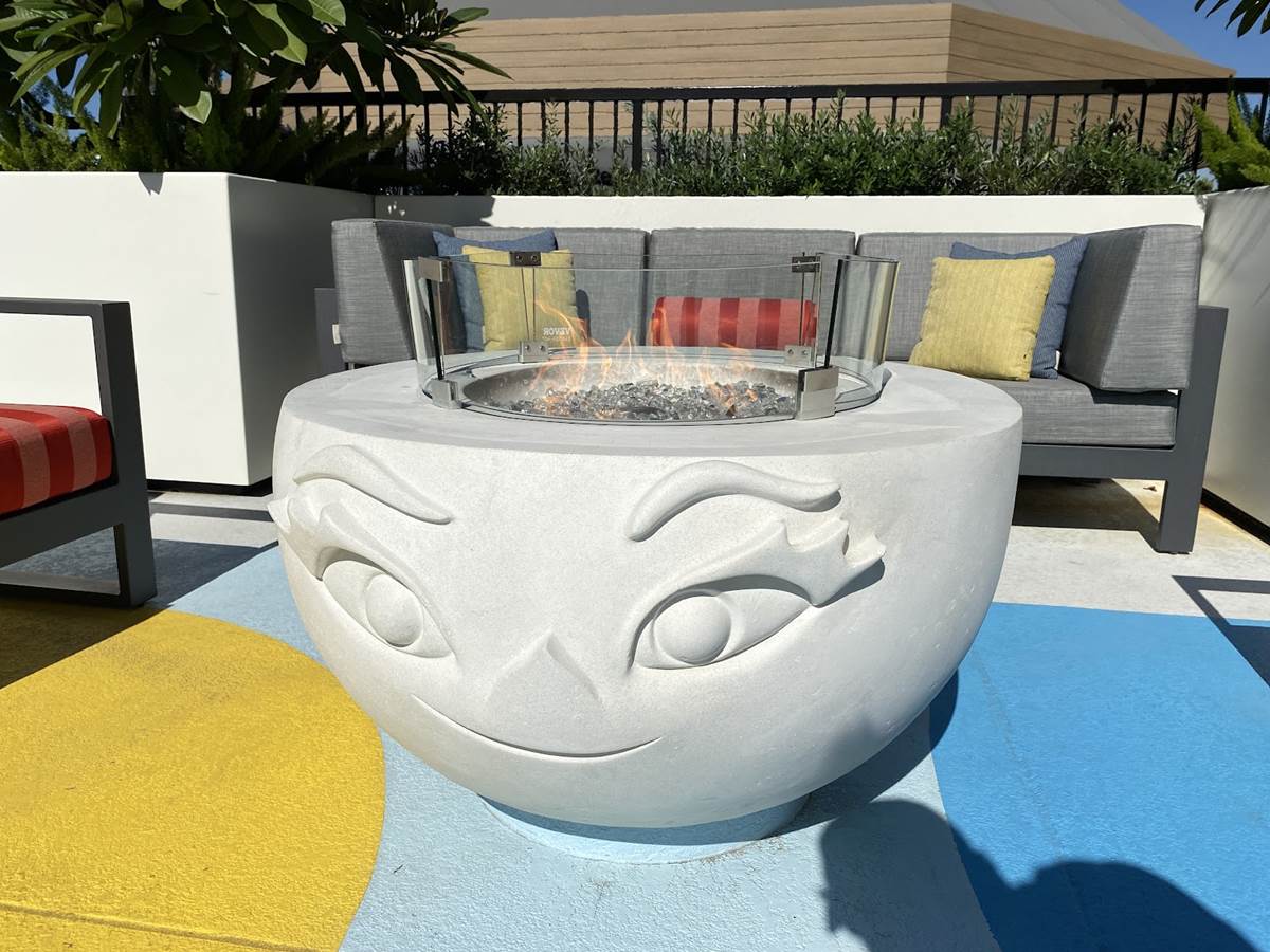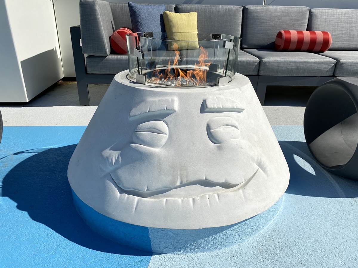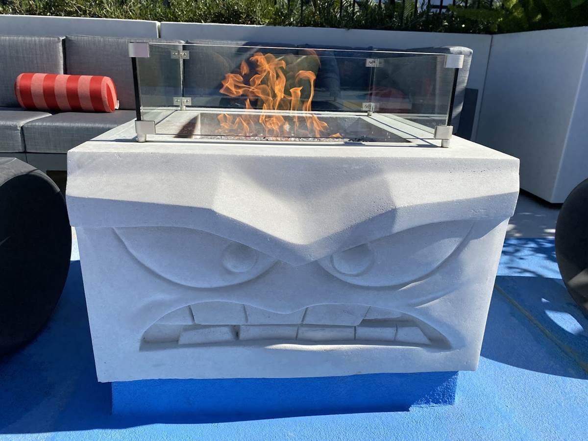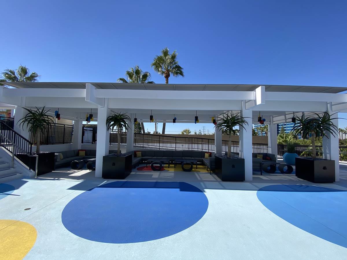Starting up on the pool deck, guests can already enjoy the hotel’s new Finding Nemo-themed splash pad and pool area, which recently opened for guests of Disney’s Paradise Pier Hotel. This rooftop pool area features Pixel Pool, which is lined with relaxing loungers, along with Nemo’s Cove pop-jet splash pad, and Crush’s Surfin’ Slide, a 186-foot-long water slide inspired by the coolest sea turtle in the ocean. An adjacent play court and pool bar will open later this fall. Right now, guests can also gather with friends on comfy couches surrounding fire pits inspired by some of Pixar’s more hotheaded characters, including Jack-Jack from The Incredibles, Anger from Inside Out, Uku from the short Lava, and Ember from Elemental.
