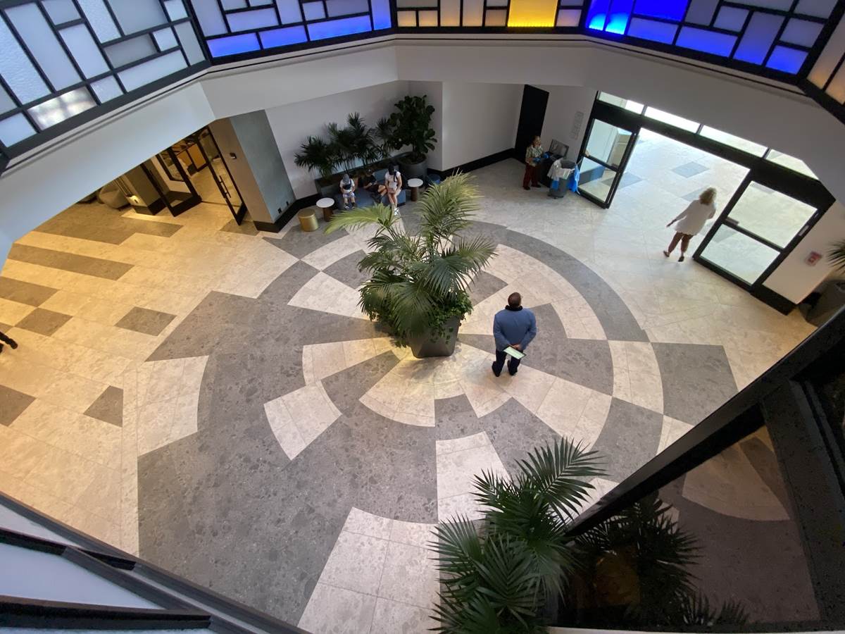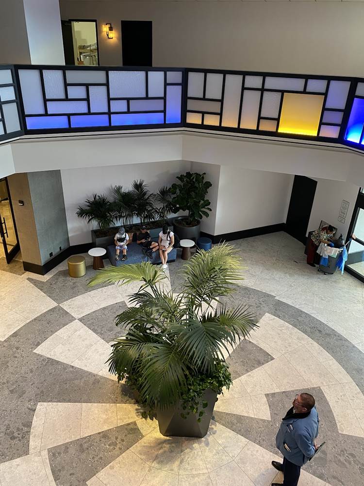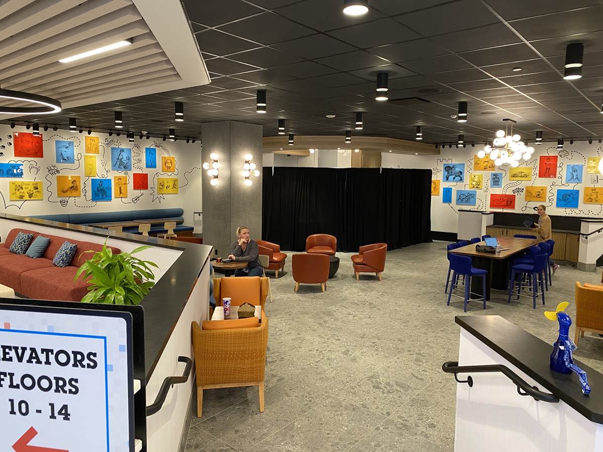 While not open yet, A new grab-and-go coffee shop in the lobby called Sketch Pad Café will serve assorted pastries accompanied by a selection of coffee and tea, but visitors can already get a glimpse of the art surrounding the new dining location.