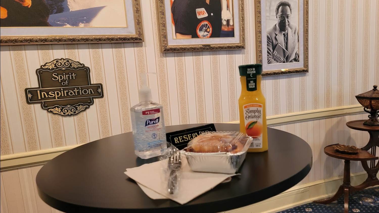 Our excursion began with some light morning snacks - a delicious warmed cinnamon apple pastry and chilled orange juice served in the exit of Great Moments with Mr. Lincoln (currently closed for refurbishment).