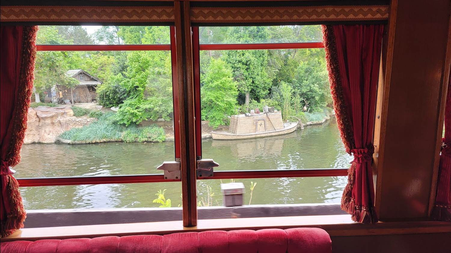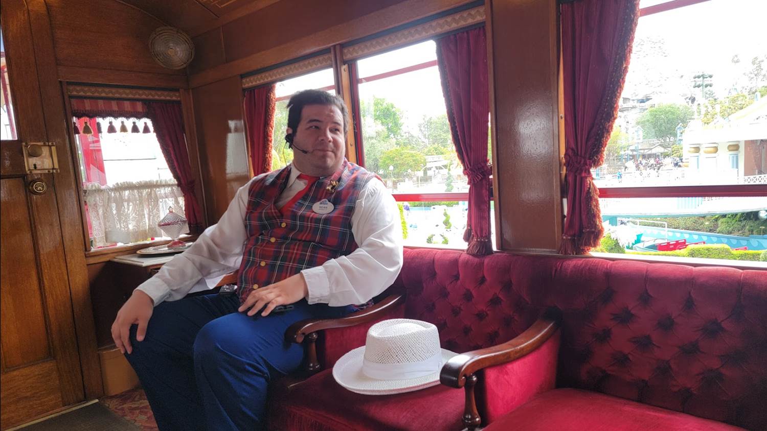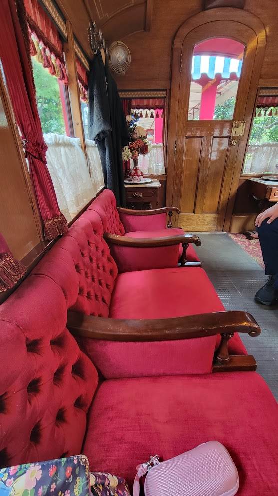 But the highlight of the tour is a chance to ride the rails in the special Presidential Car, the Lilly Belle. This beautifully restored railroad car features vintage decor selected by Walt Disney’s wife Lillian for whom the car is named. If you’ve seen images of Walt Disney’s Main Street apartment, you’ll see similarities in the decor. I was surprised by how different I found the familiar sights of Disneyland framed by the Lilly Belle windows’ fringed curtains. It made me think back to classic images of the park’s early days that I’ve seen as I enjoyed the muted sounds along the route due to being inside a closed car.