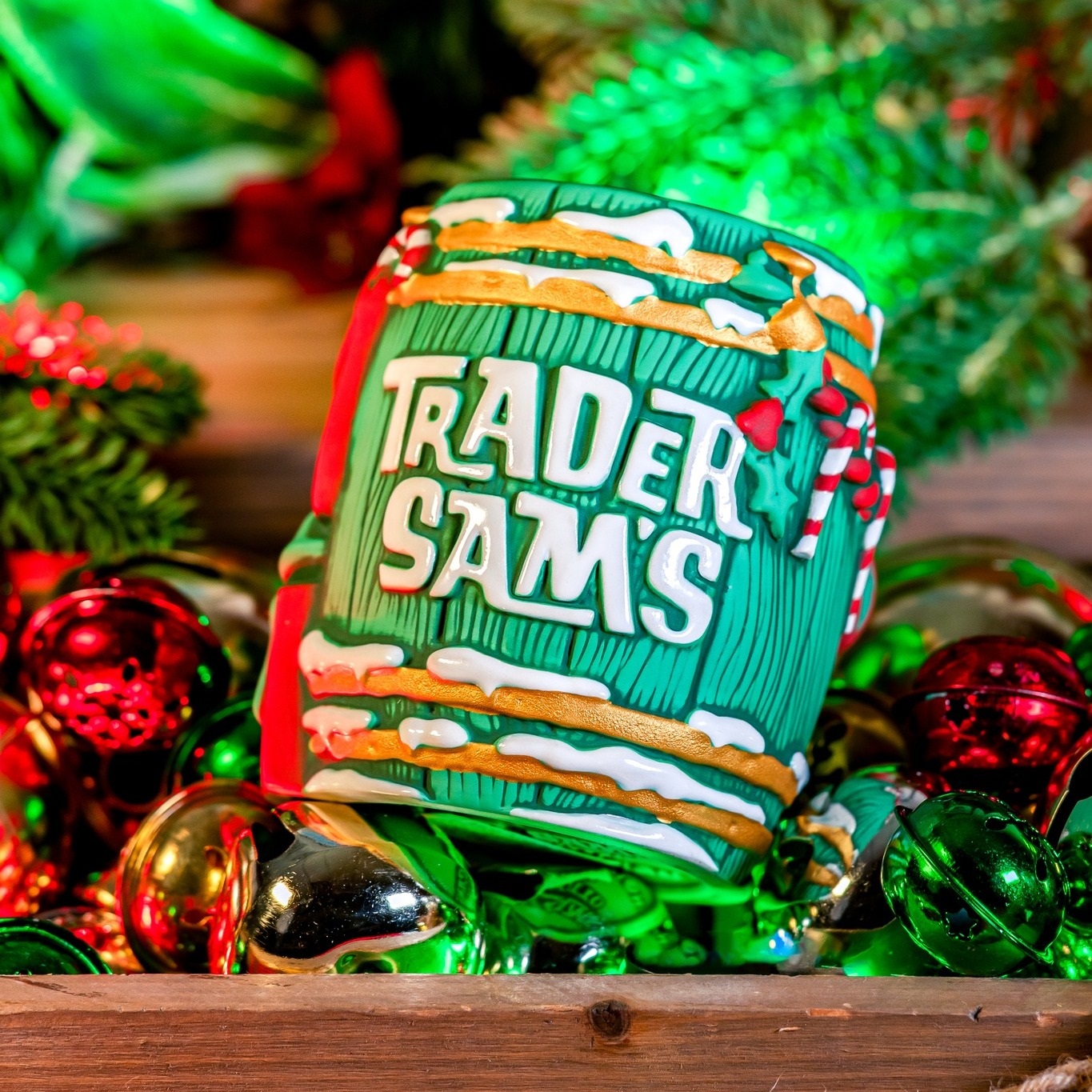 - Exclusive to Trader Sam's Enchanted Tiki Bar at the Disneyland Hotel, the 2nd edition Holiday Rum Barrel Mug comes with the Holiday Mickey Jingle Bell Swizzle Stick.