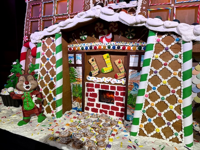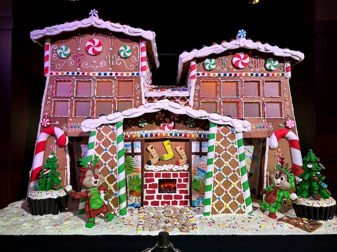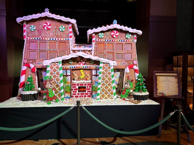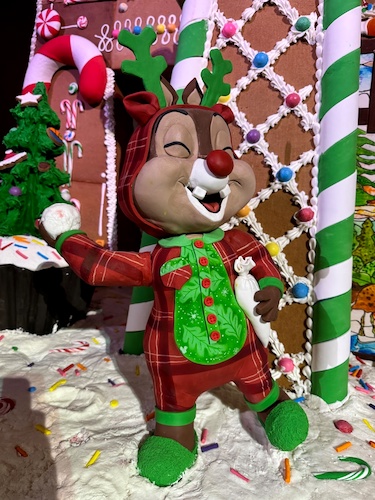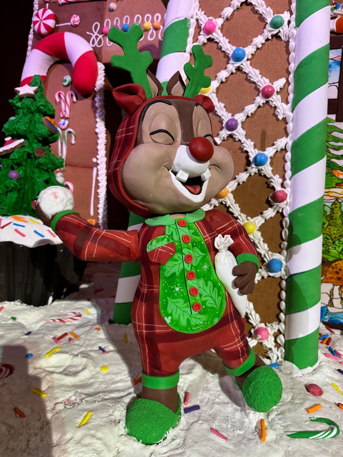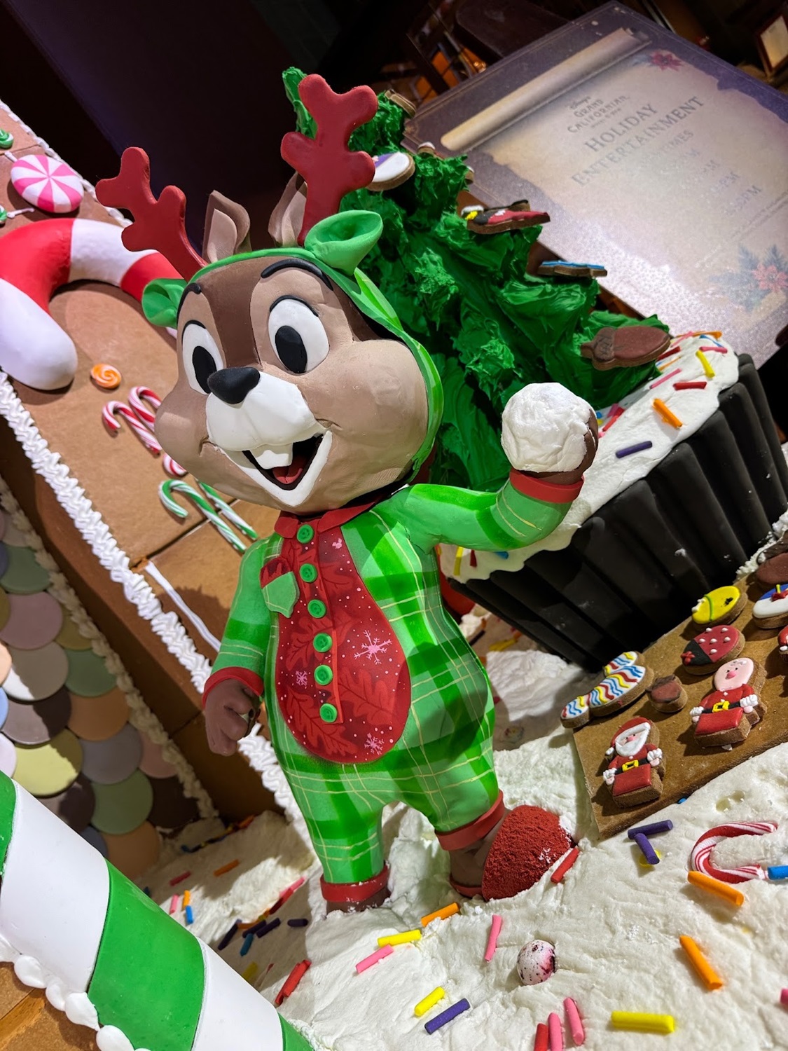 This year’s gingerbread creation in the lobby is a replica of Disney’s Grand Californian Hotel and Spa with none other than Chip ‘n’ Dale in their pajama attire, as seen in Mickey’s Holiday Pajama Party Breakfast and Brunch at Storytellers Cafe.