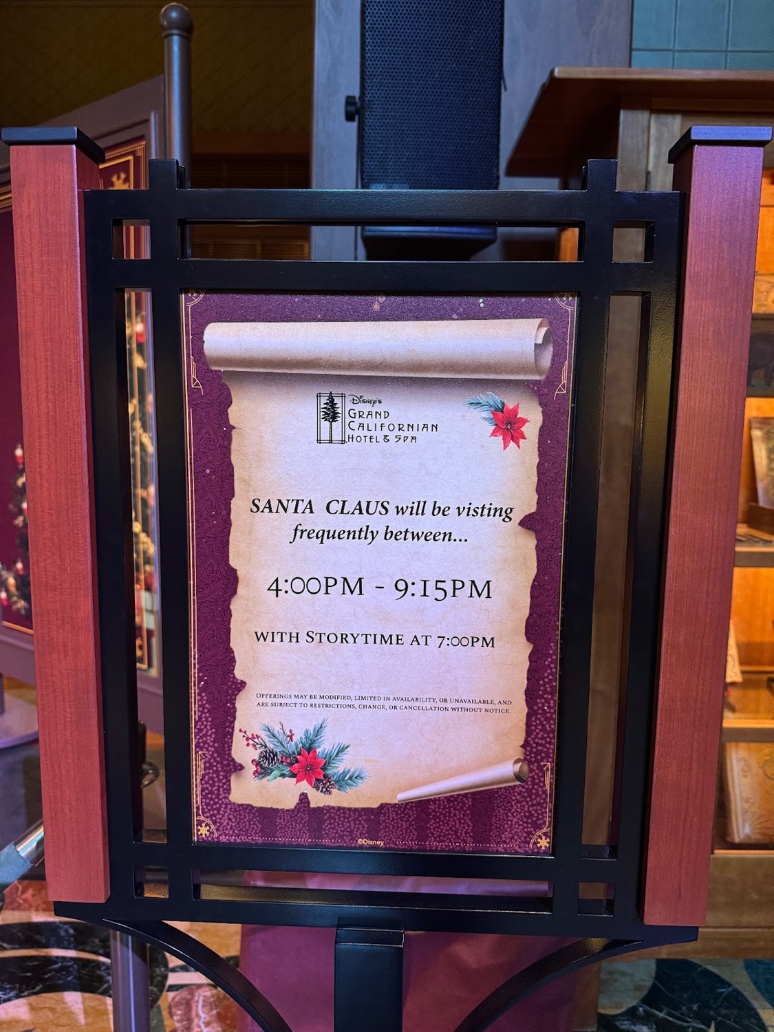 Jolly Old Saint Nick himself also appears at the hotel intermittently in the afternoon/evening, with a storytime also scheduled.