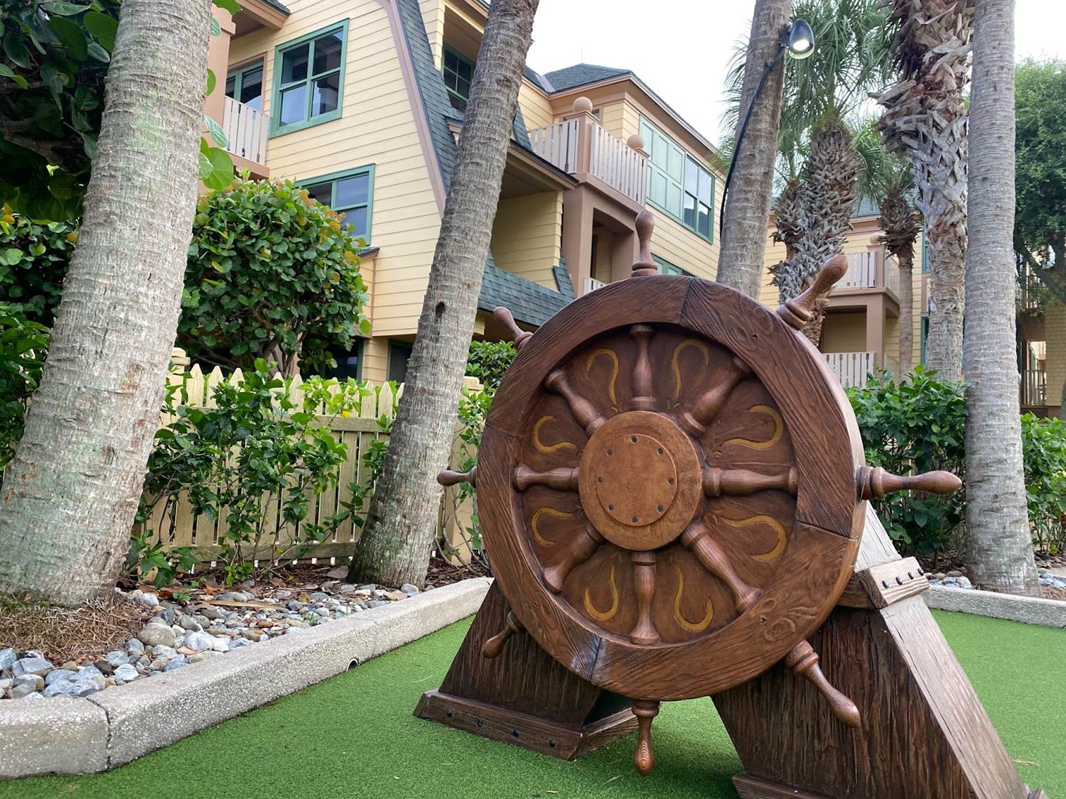 Recreation-wise, there’s a wonderful pool and slide complex, a Peter Pan-themed 9-hole miniature golf course, and perhaps the highlight – a private beach entrance located right behind the hotel. Here, you may come across a sea turtle nest, while relaxing and lounging along the beautiful Atlantic coast. Another Peter Pan-themed offering is a tunnel which takes you across the street to a large lake complete with natural trails. We spotted a number of turtles in the lake, swimming around and enjoying themselves.