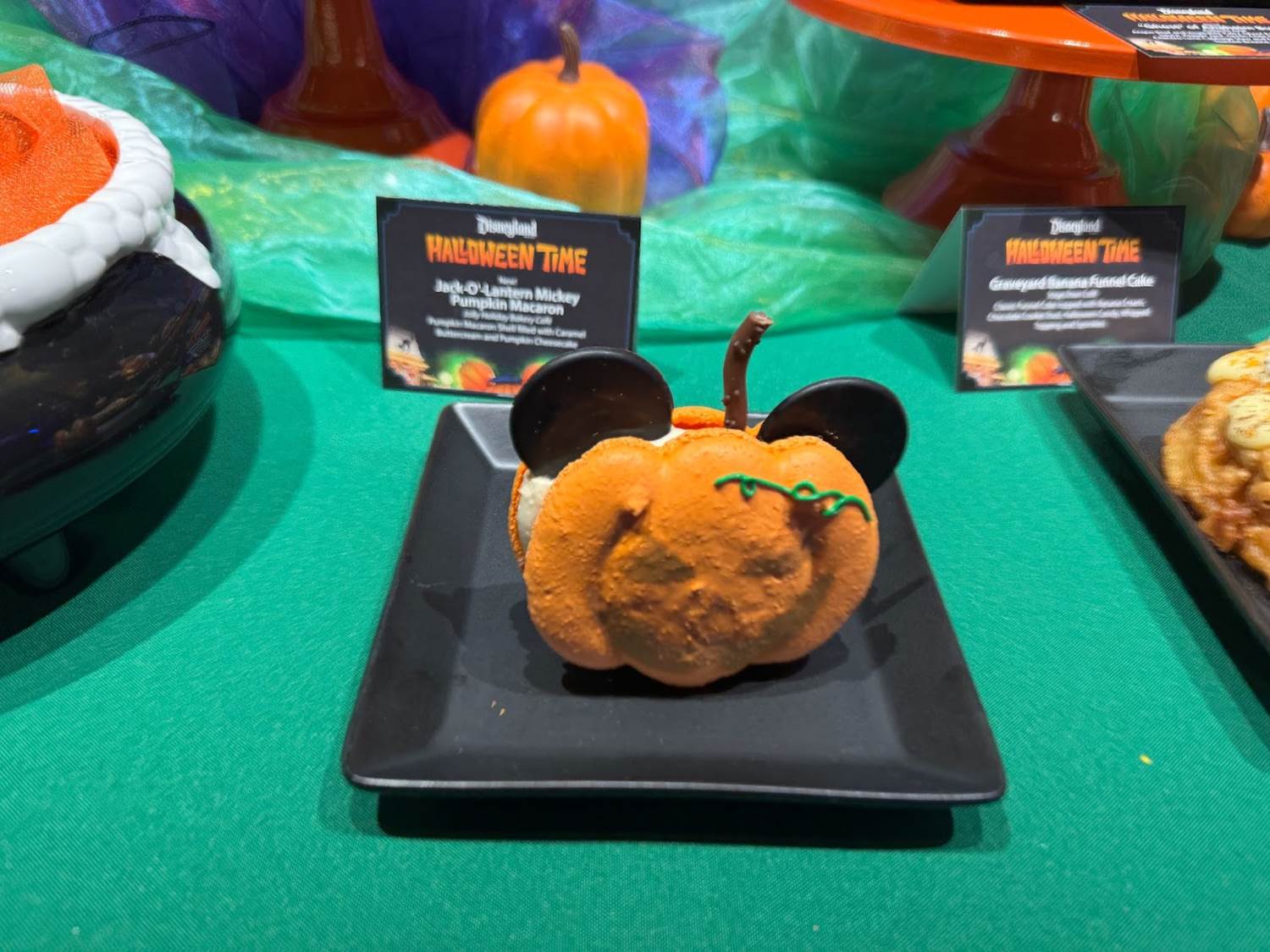 Jack-O’-Lantern Mickey Pumpkin Macaron: Pumpkin macaron shell filled with caramel buttercream and pumpkin cheesecake (Jolly Holiday through December 31st)
