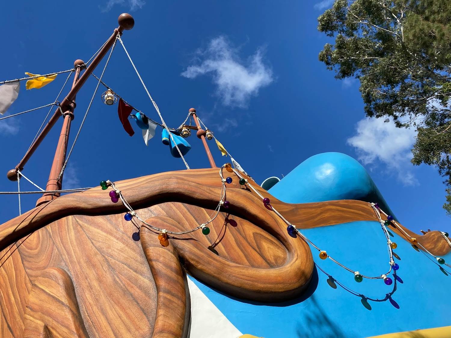 The official Disneyland website describes it as a place to “flap on over to a playful pond—the hospitable home of Donald Duck. Discover larger-than-life spinning water lilies, daring balance beams and rocking toys, perfect for keeping adventurous kids busy! For those who like a little splash in their step, a flood of fun awaits at Donald’s Boat. Peek through the portholes of this water-logged vessel to witness tons of tomfoolery—and spot some familiar ducklings, including Huey, Dewey, Louie and Webby. No matter what you choose to do, you’ll take to fun like a duck to water!