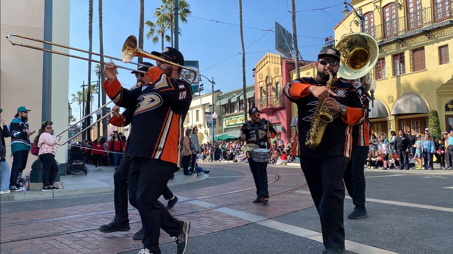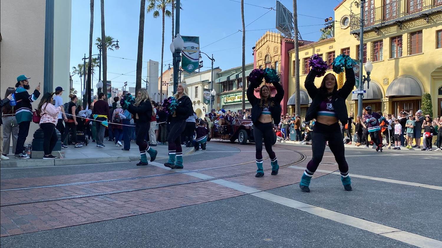 - Guests could pick their spot along the path between Hollywood Land and Paradise Gardens Park to see some current Anaheim Ducks players in this cavalcade to celebrate the special occasion.