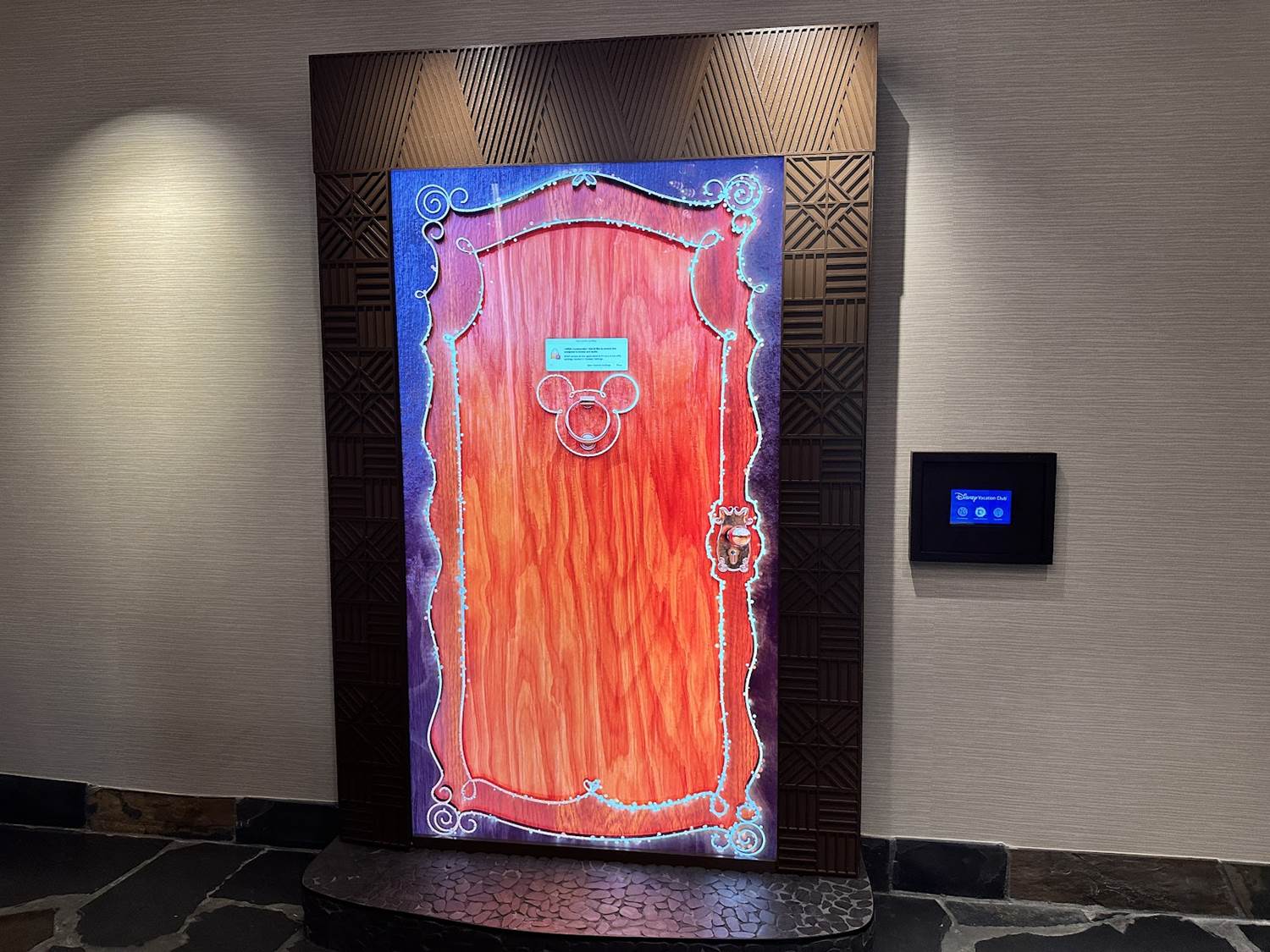 - Though the door was not fully functional on our visit, the button panel next to it reveals that we could look at Disney’s Riviera Resort or Villas at Disneyland Hotel, as well as others in the Disney Collection.