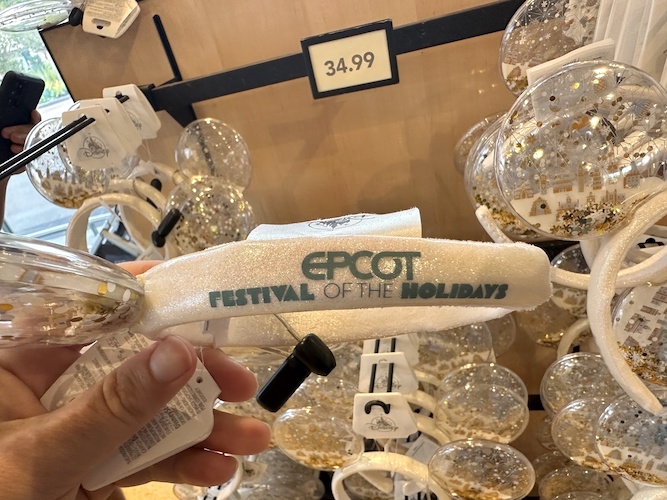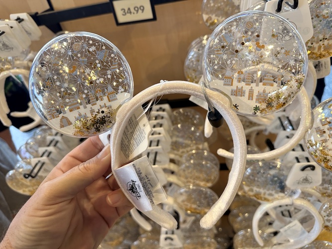 And of course, specialty ears are also available. This pair, with the festival logo on the band, features ears that are translucent like a snowglobe and filled with winter fun.
