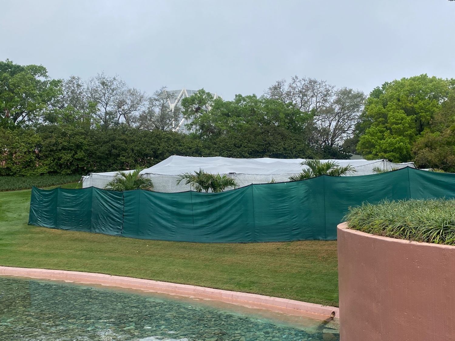 Artwork transforming the Odyssey pavilion into The Citrus Blossom has been installed while the building remains closed.
