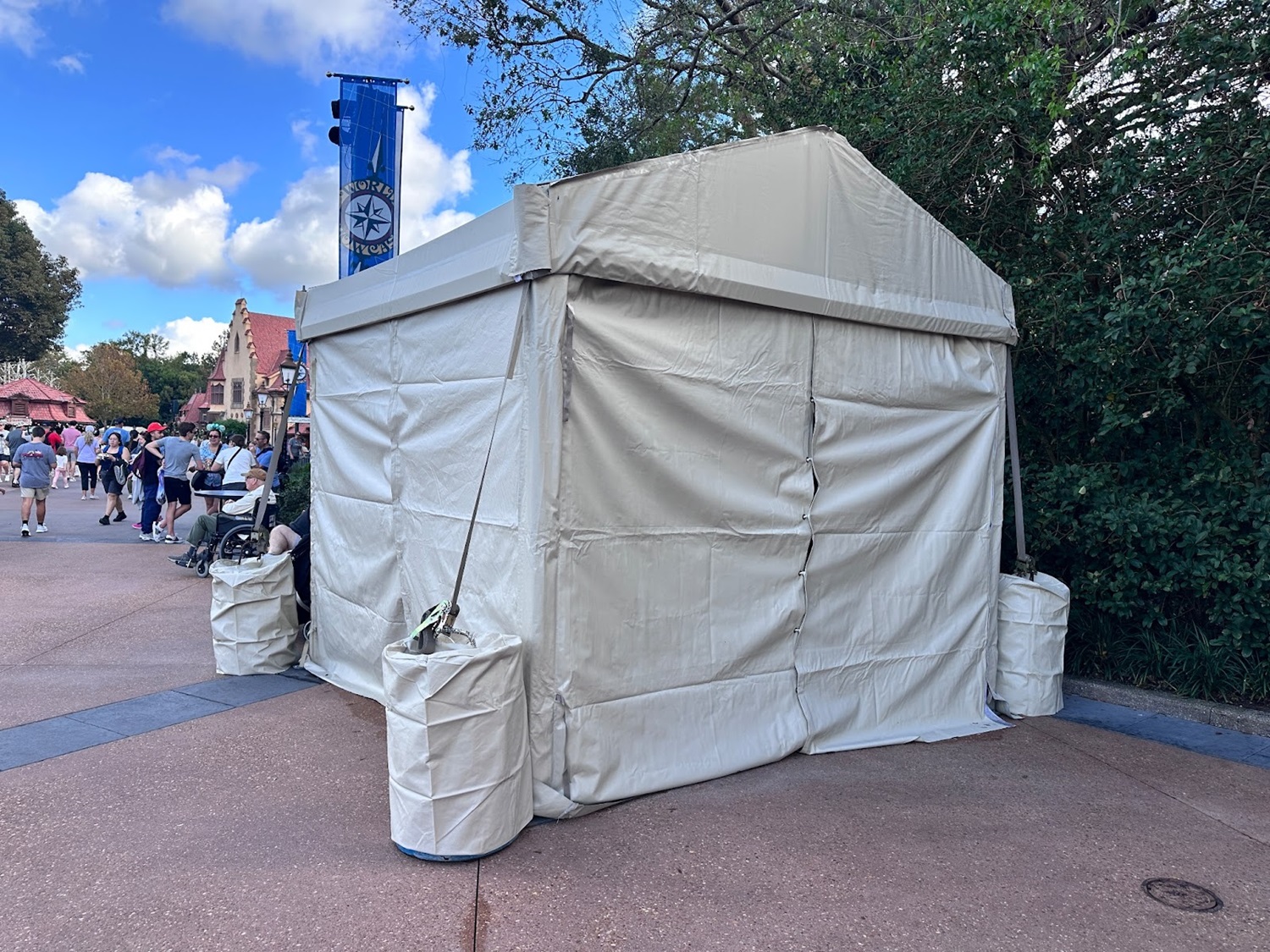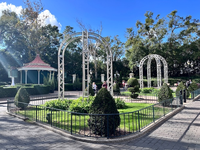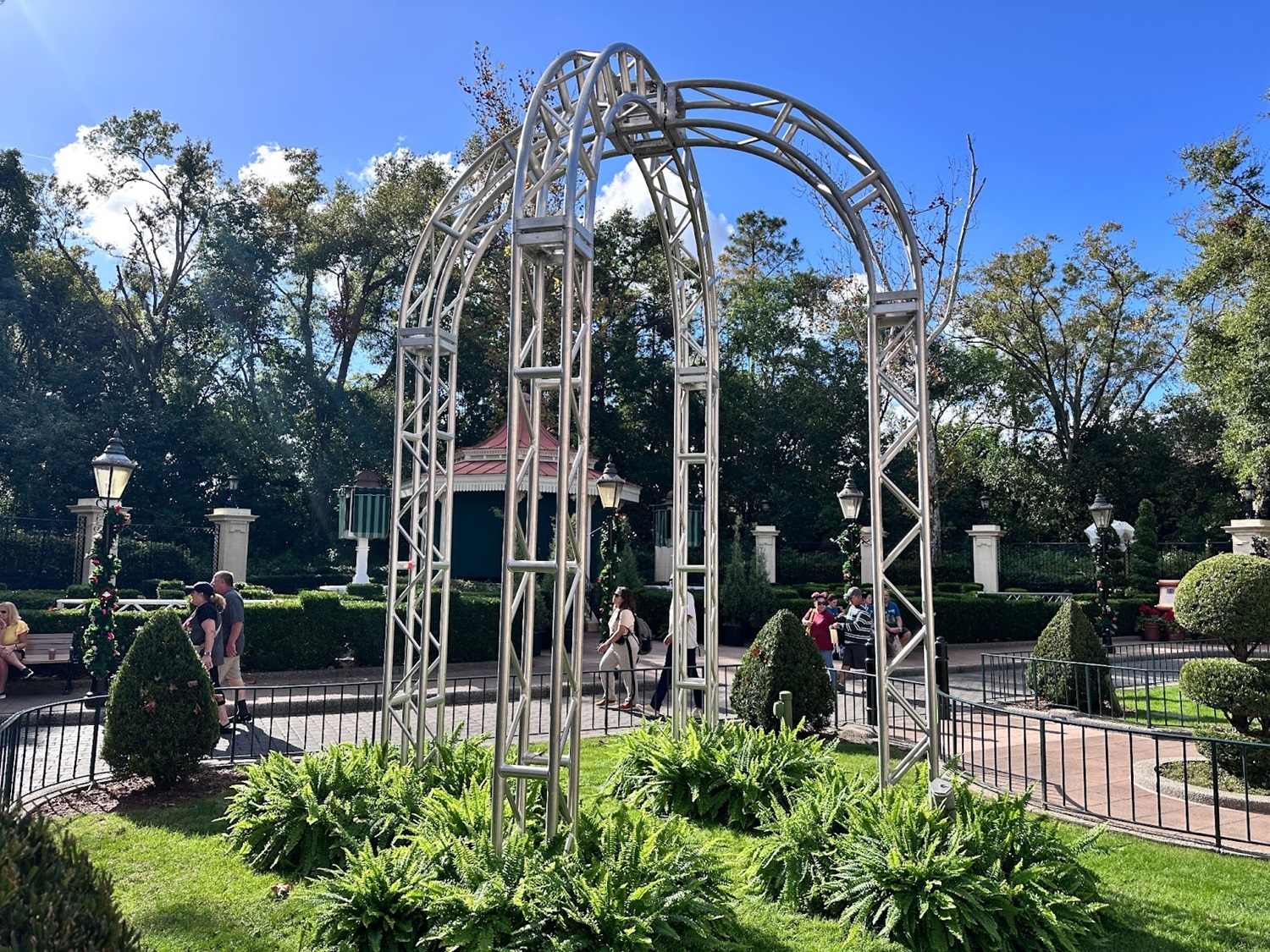 Meanwhile, set-up for the park’s New Year’s Eve celebrations has begun in Italy and the United Kingdom. Large scaffolding takes over much of the courtyard area of the Italy pavilion.