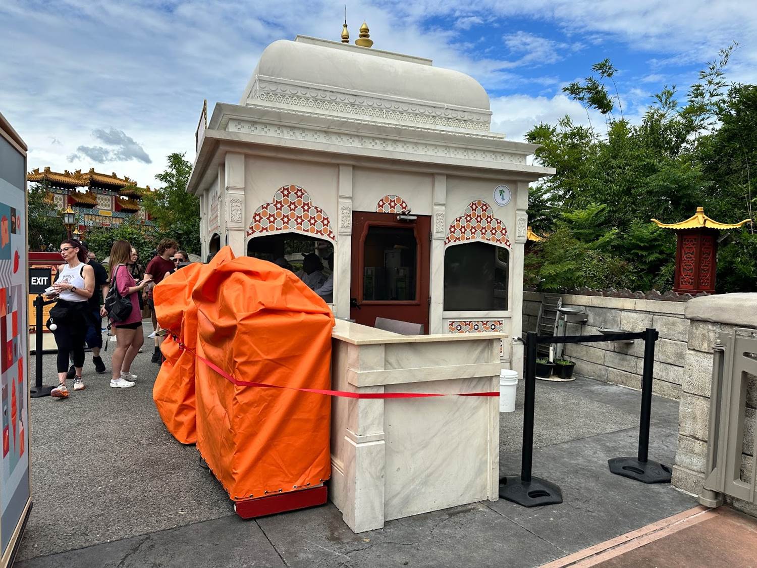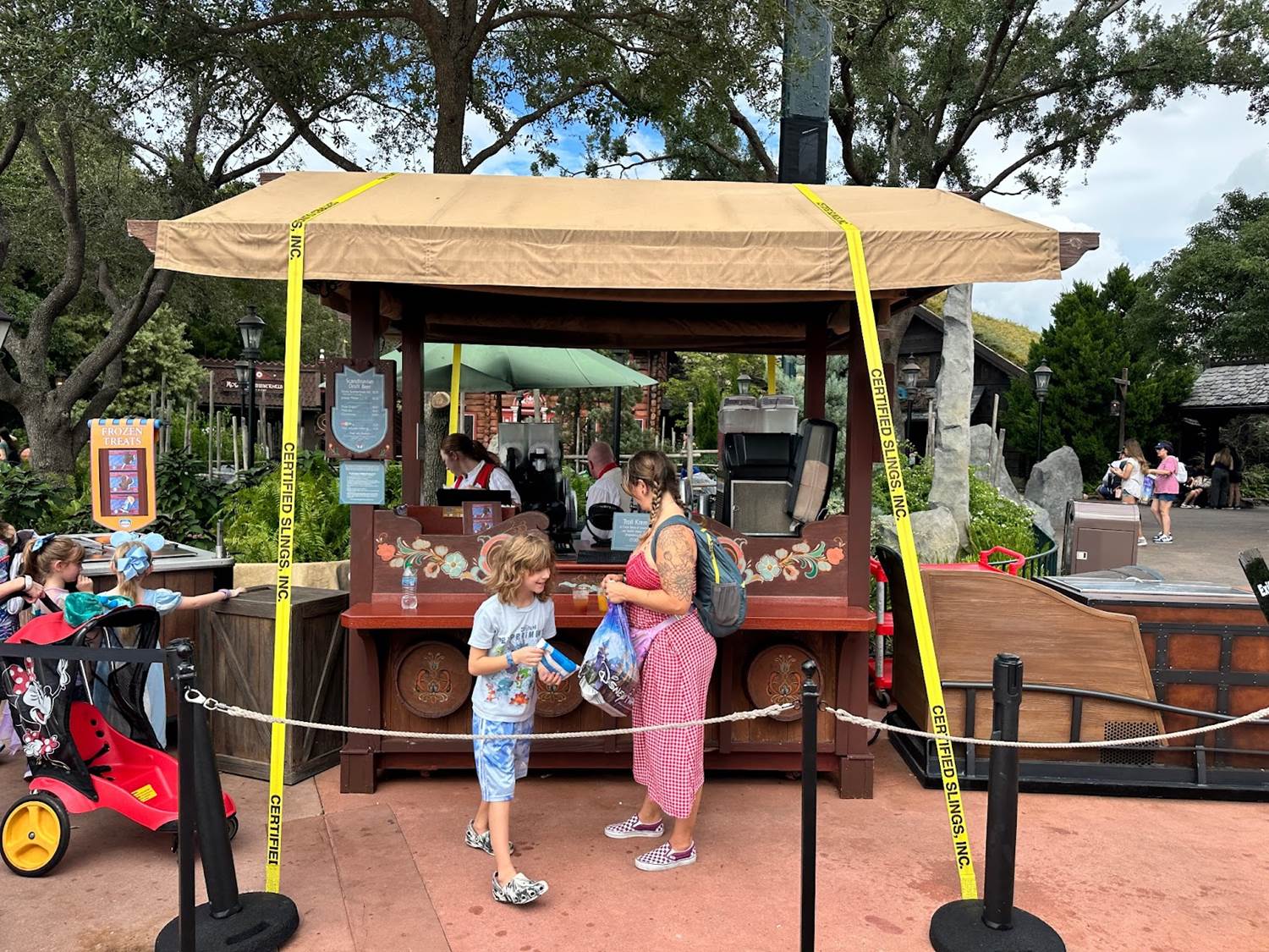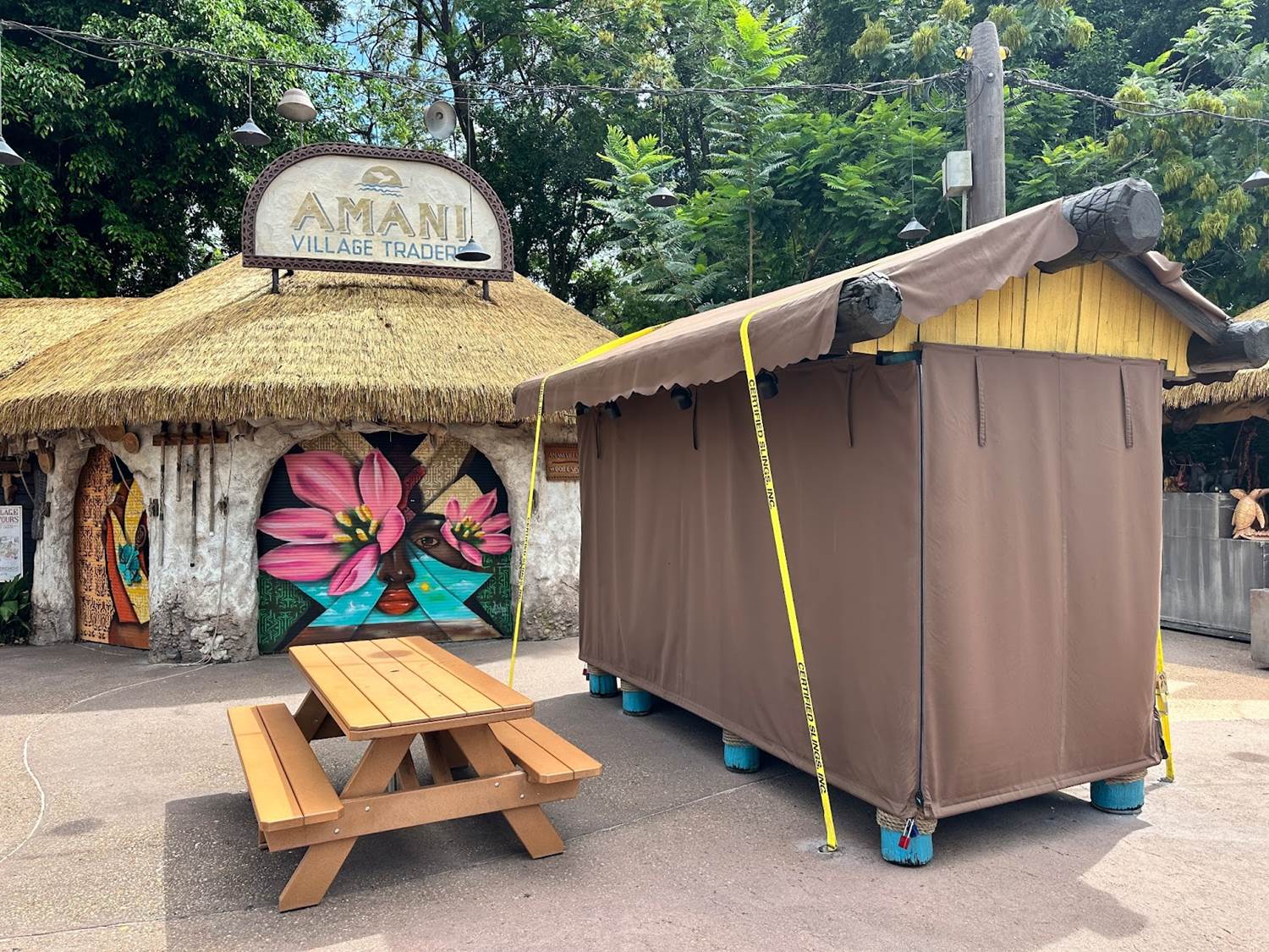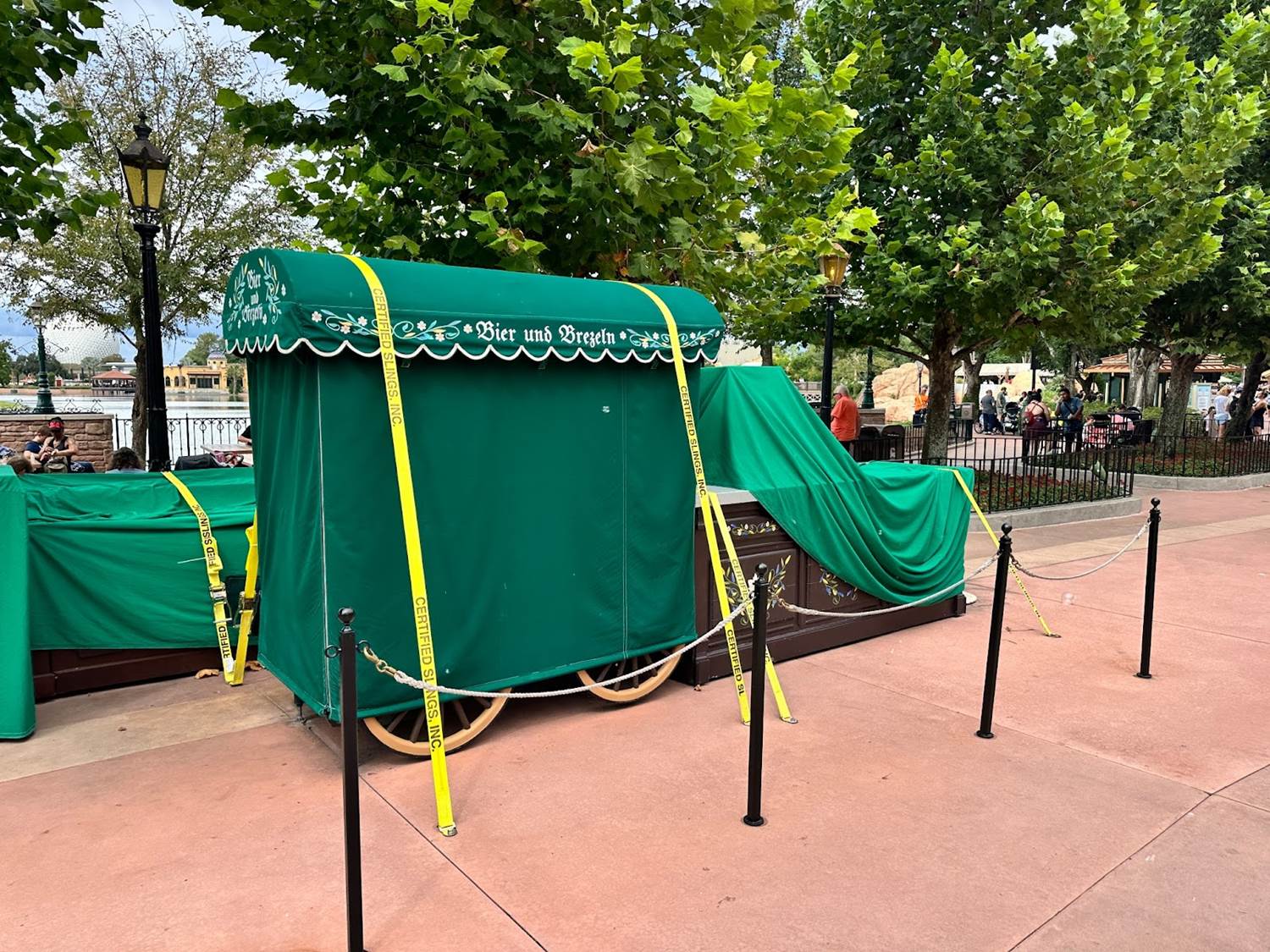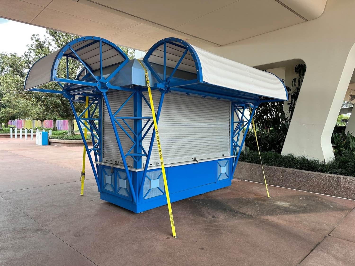 - Throughout the park, many of the outdoor vending carts and stands have been secured with straps and bolted to the ground.
