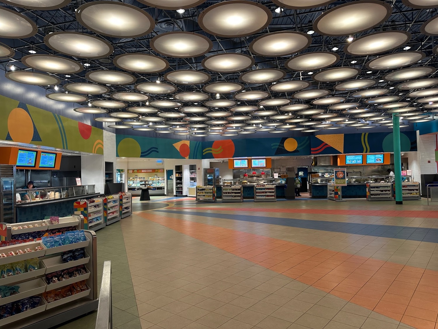 The rest of the food court is now open, complete with the beloved tie-dye cheesecake.