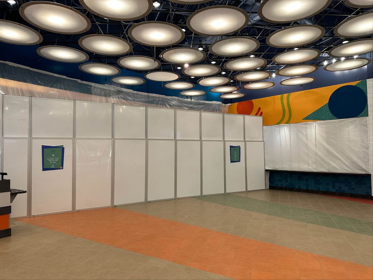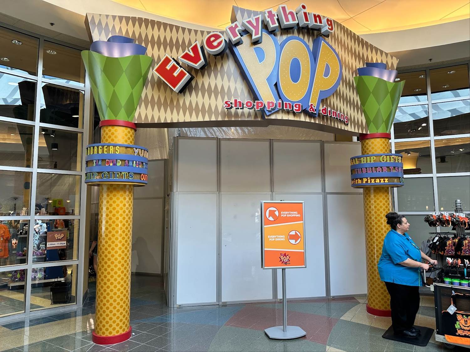 Construction is continuing on the Pop Century food court and gift shop, Everything Pop, at Walt Disney World.