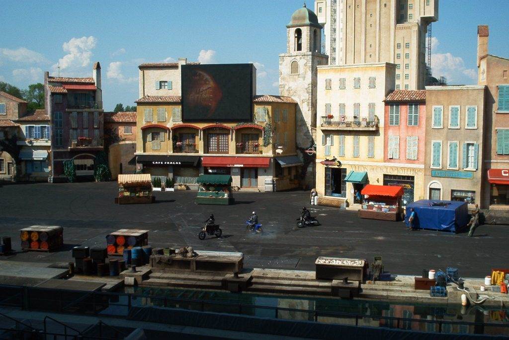 But today’s journey takes us to the earliest days of Walt Disney Studios Park, when the park opened as a sister park to both Disneyland Paris and what was then Disney-MGM Studios. The park had its own Studio Tram Tour and Armageddon-themed effects show that helped immerse people in the world of movie making. With that mission instilled, the powers that be decided to add a stunt show, in the vein of the Indiana Jones Stunt Spectacular, but this time with the show revolving around cars. People are always fascinated by car chases, so debuting Moteurs…Action! Stunt Show Spectacular on the park’s opening day of March 16, 2002 was a perfect choice to help draw people to the park immediately.