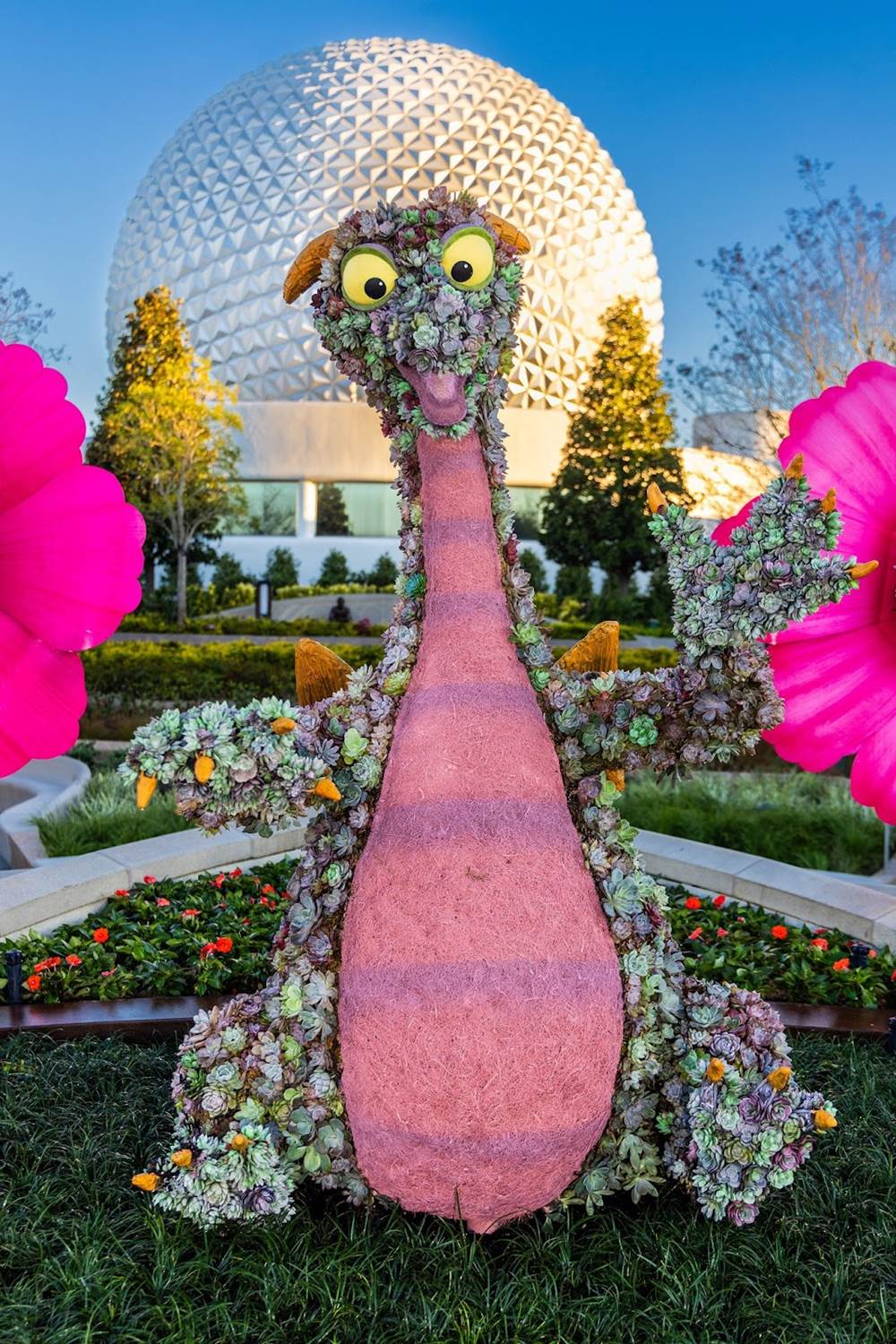 Figment has a new home at this year’s EPCOT International Flower & Garden Festival, as the topiary dragon serves as the centerpiece of the park’s recently-opened World Celebration Gardens.