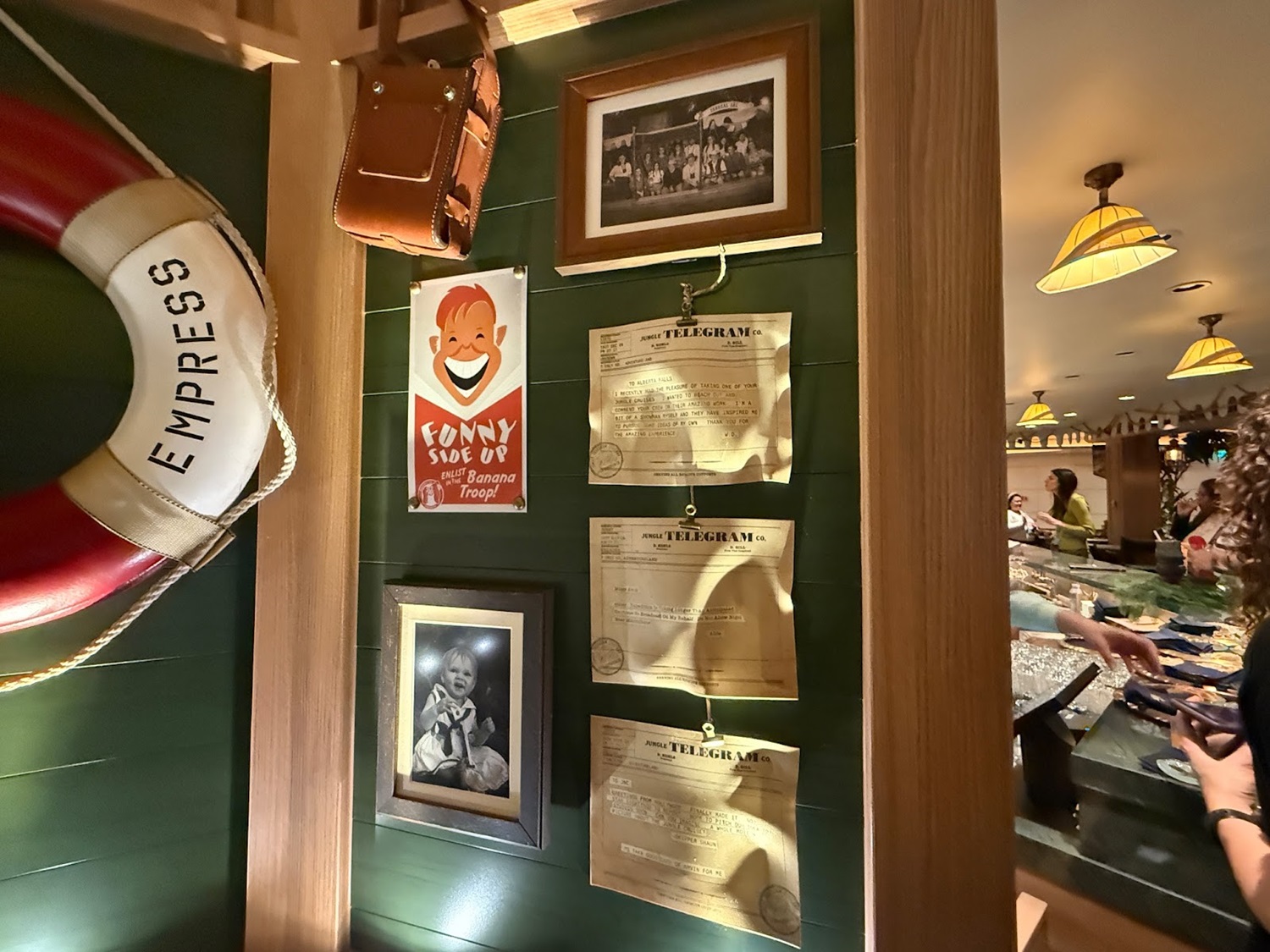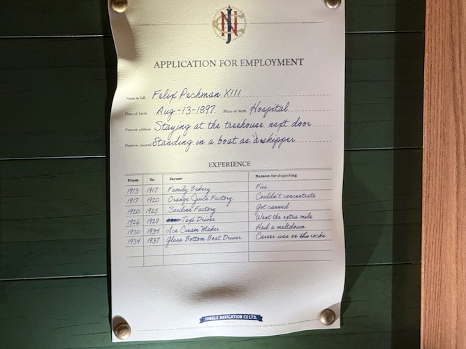 - References to Jungle Cruise abound through the space – from whimsical parrot-shaped chandeliers to postcards brought back from travels abroad.