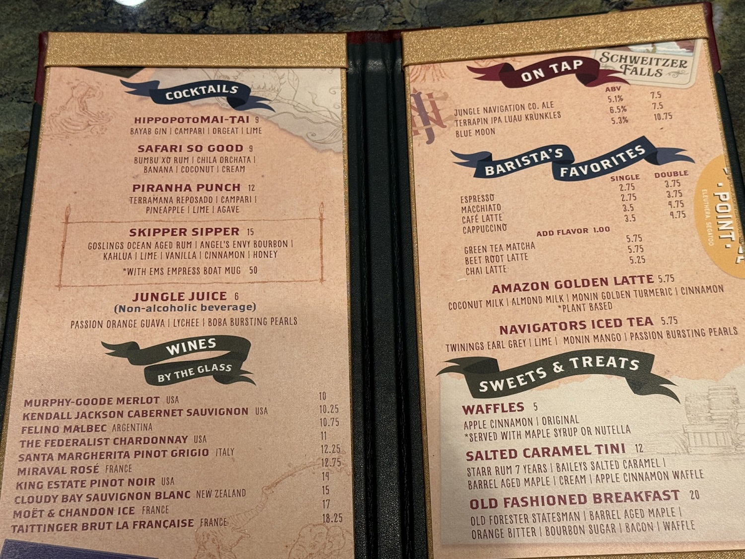 Puns aplenty, delicious treats and gorgeous decor welcomes guests to this Jungle Cruise-inspired lounge.