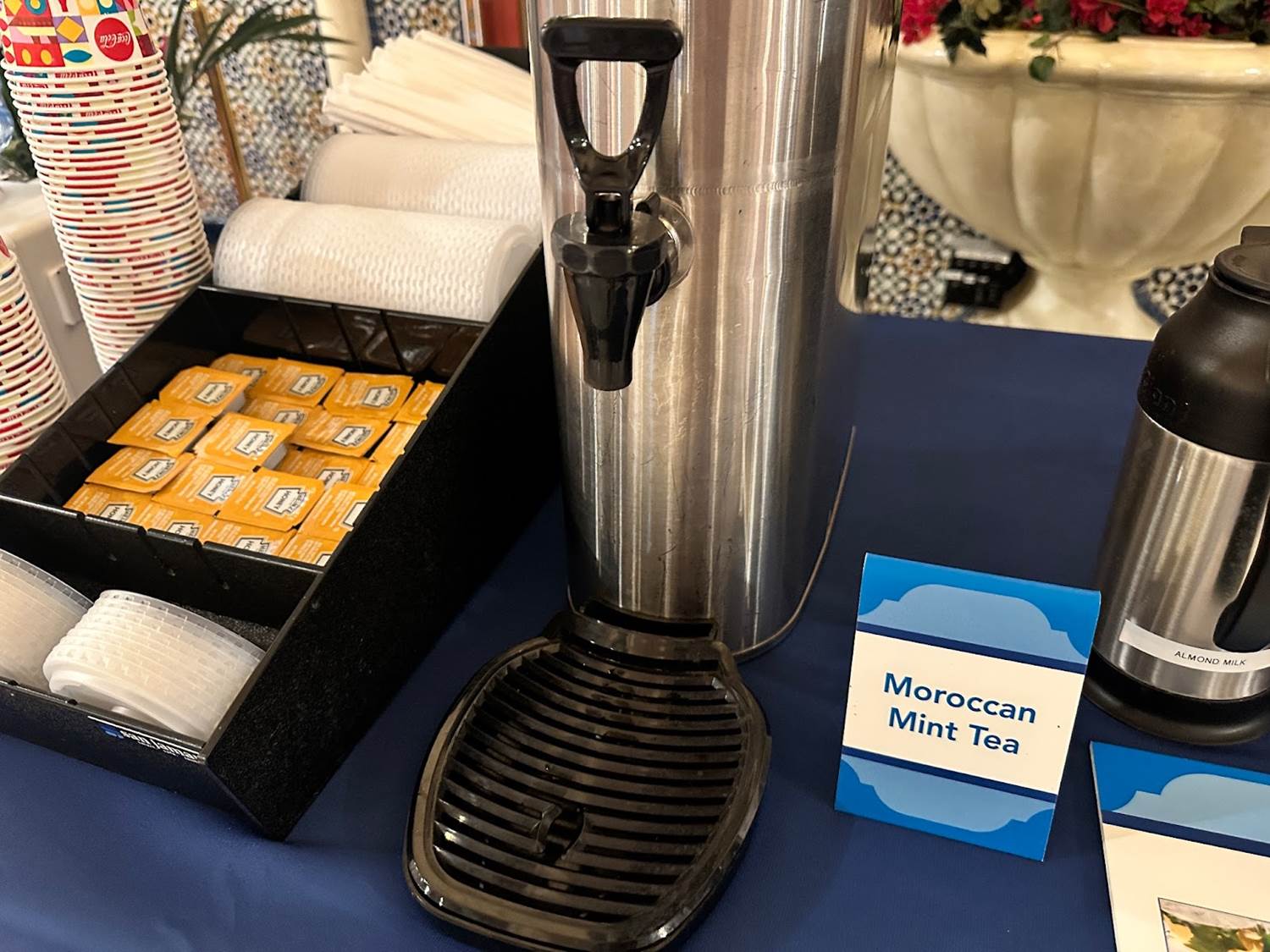 - Inside, guests can enjoy comfortable air conditioning with a variety of complimentary drinks, such as cold brew coffee and Moroccan mint tea available.