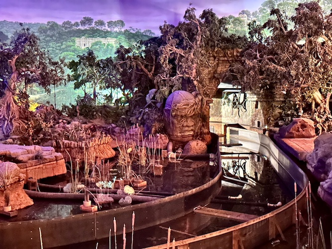- The water in the attraction has been drained, with work lights turned on everywhere but the first section of the ride, which still features show lighting for guests dining at San Angel Inn.