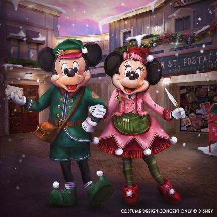 - Mickey, Minnie and some of their friends will debut these charming new outfits in Disneyland park, reminiscent of traditions of writing heartfelt letters to friends, family or even Santa Claus during the holiday season. Featuring striped stockings, detailed embroidery and festive postal trims, these looks are perfect for this year’s festivities.