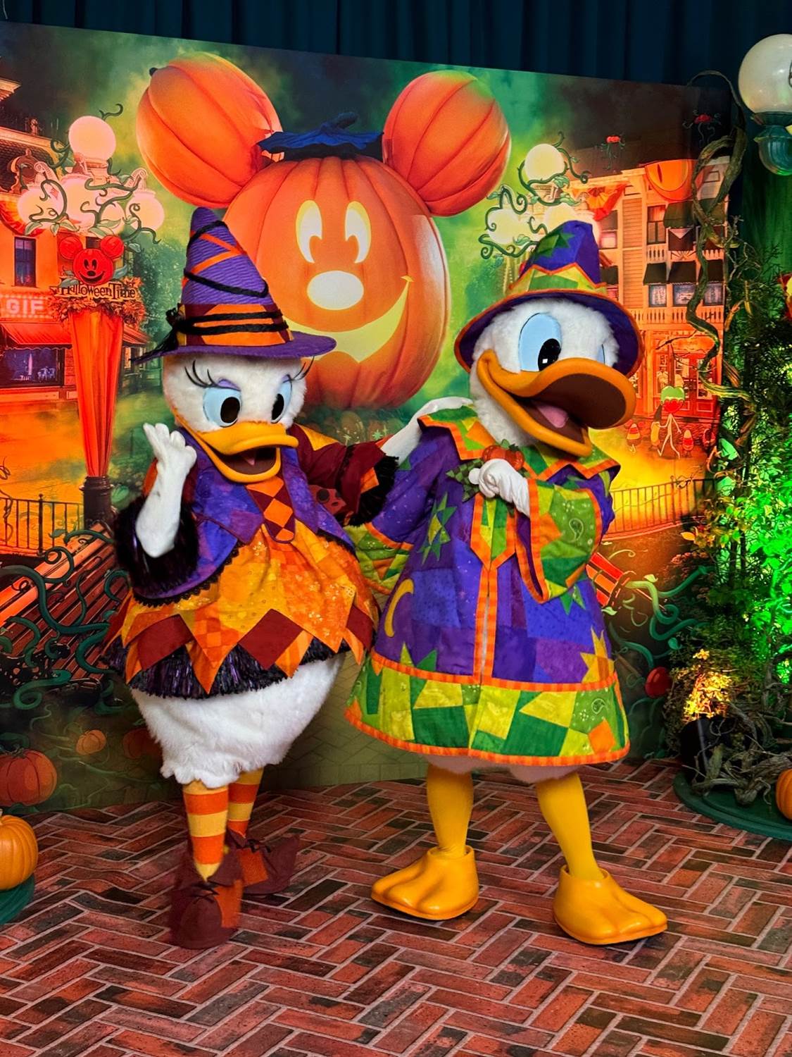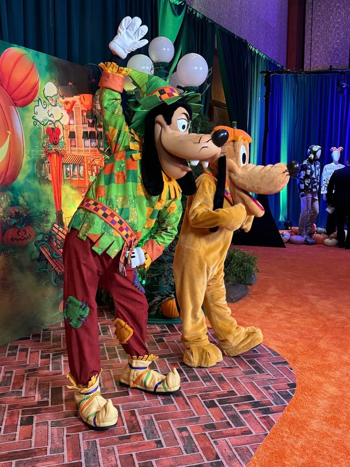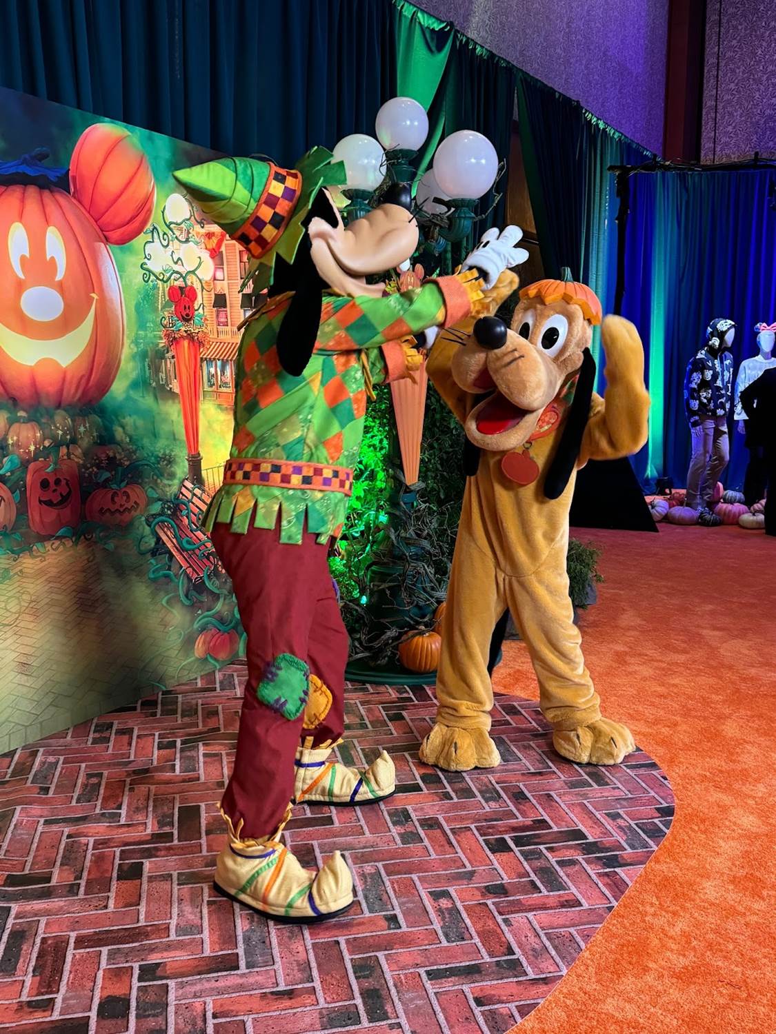 We were able to meet with Mickey, Minnie, Donald, Daisy, Goofy and Pluto to check out their new costumes, created specifically for 2024’s Halloween festivities. Mickey and Minnie appear to be a vampire and witch, respectively, with plenty of colors on top of a black base.