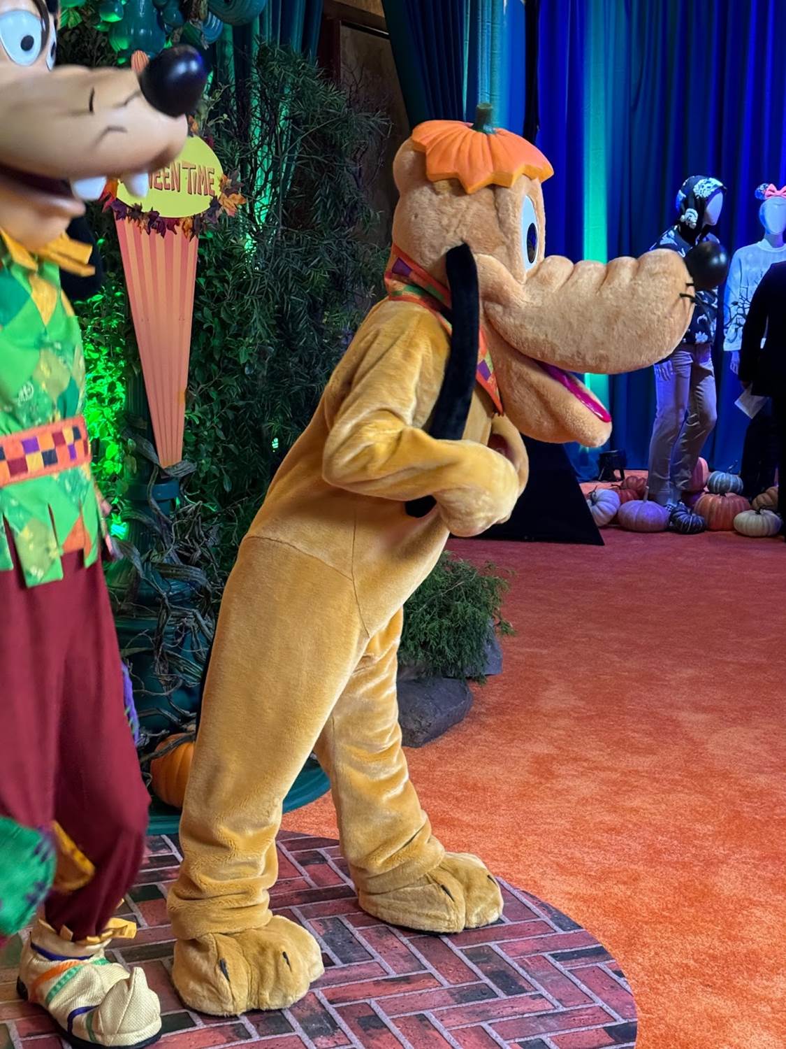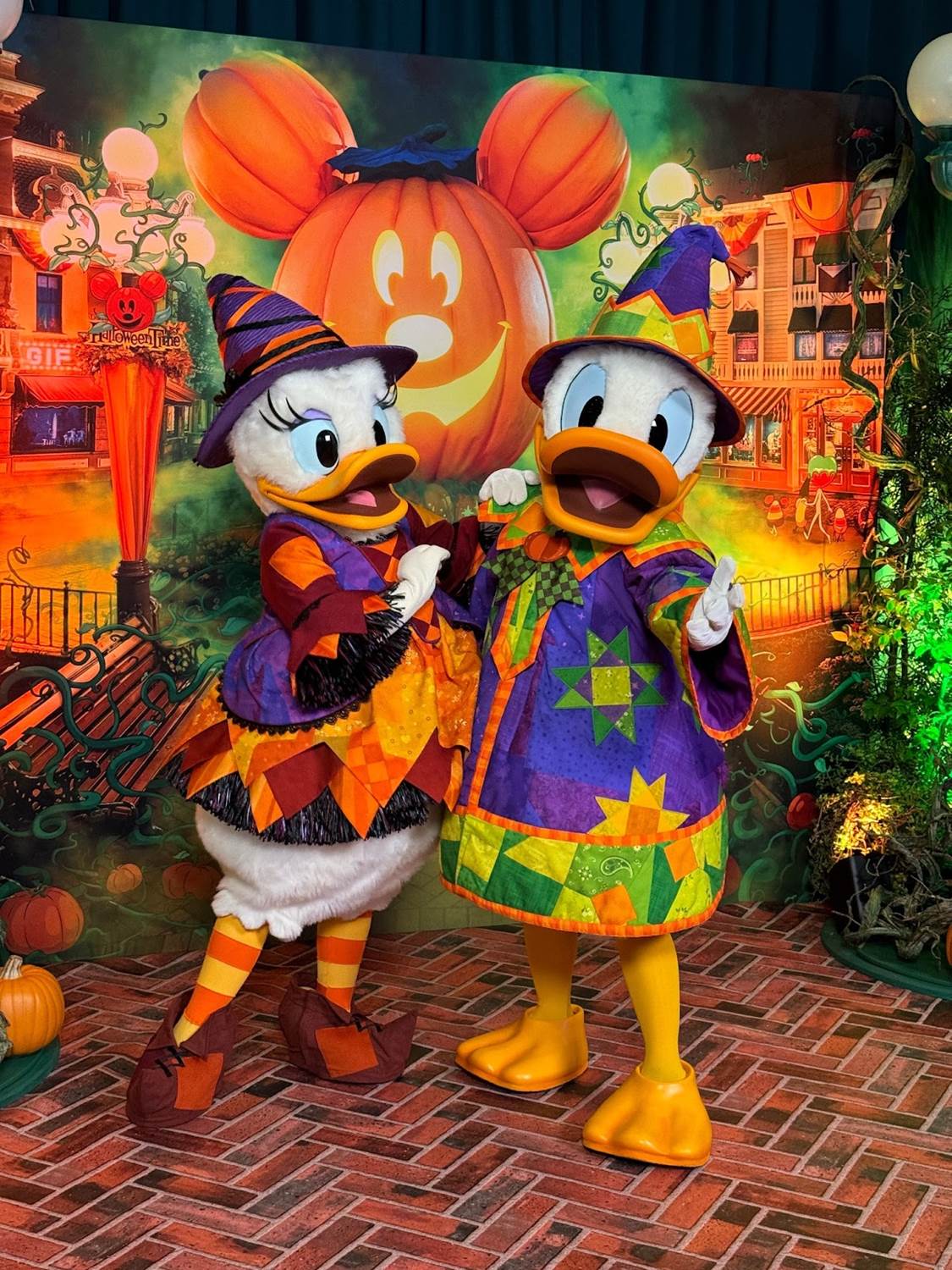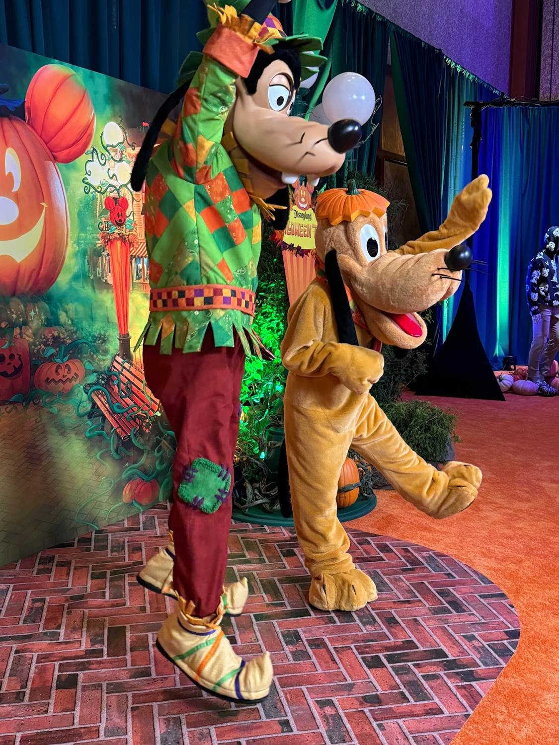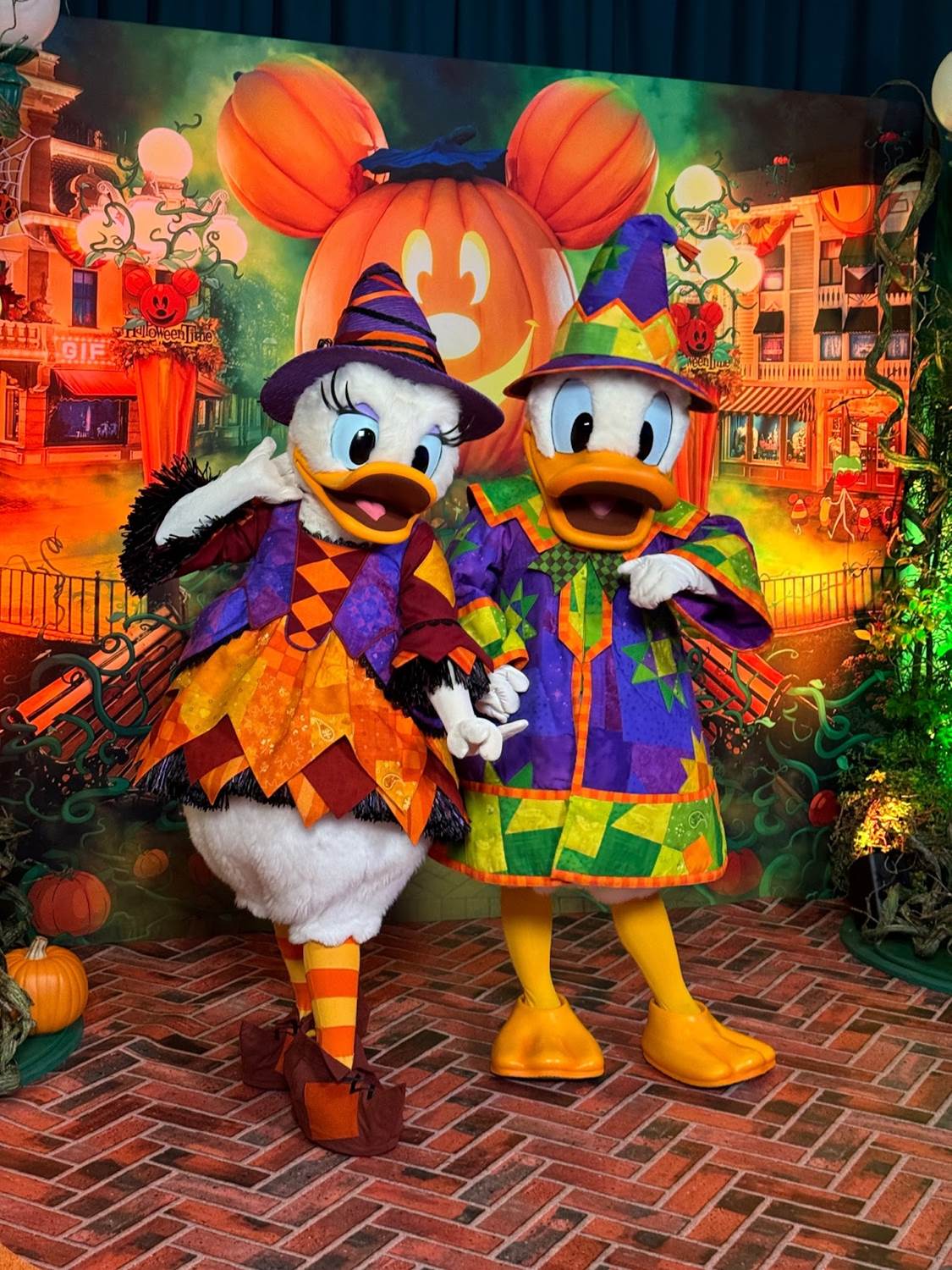 We were able to meet with Mickey, Minnie, Donald, Daisy, Goofy and Pluto to check out their new costumes, created specifically for 2024’s Halloween festivities. Mickey and Minnie appear to be a vampire and witch, respectively, with plenty of colors on top of a black base.