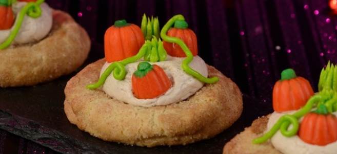 - Pumpkin Patch Cookie that’s a snickerdoodle base topped with pumpkin-spiced buttercream and pumpkin candies.