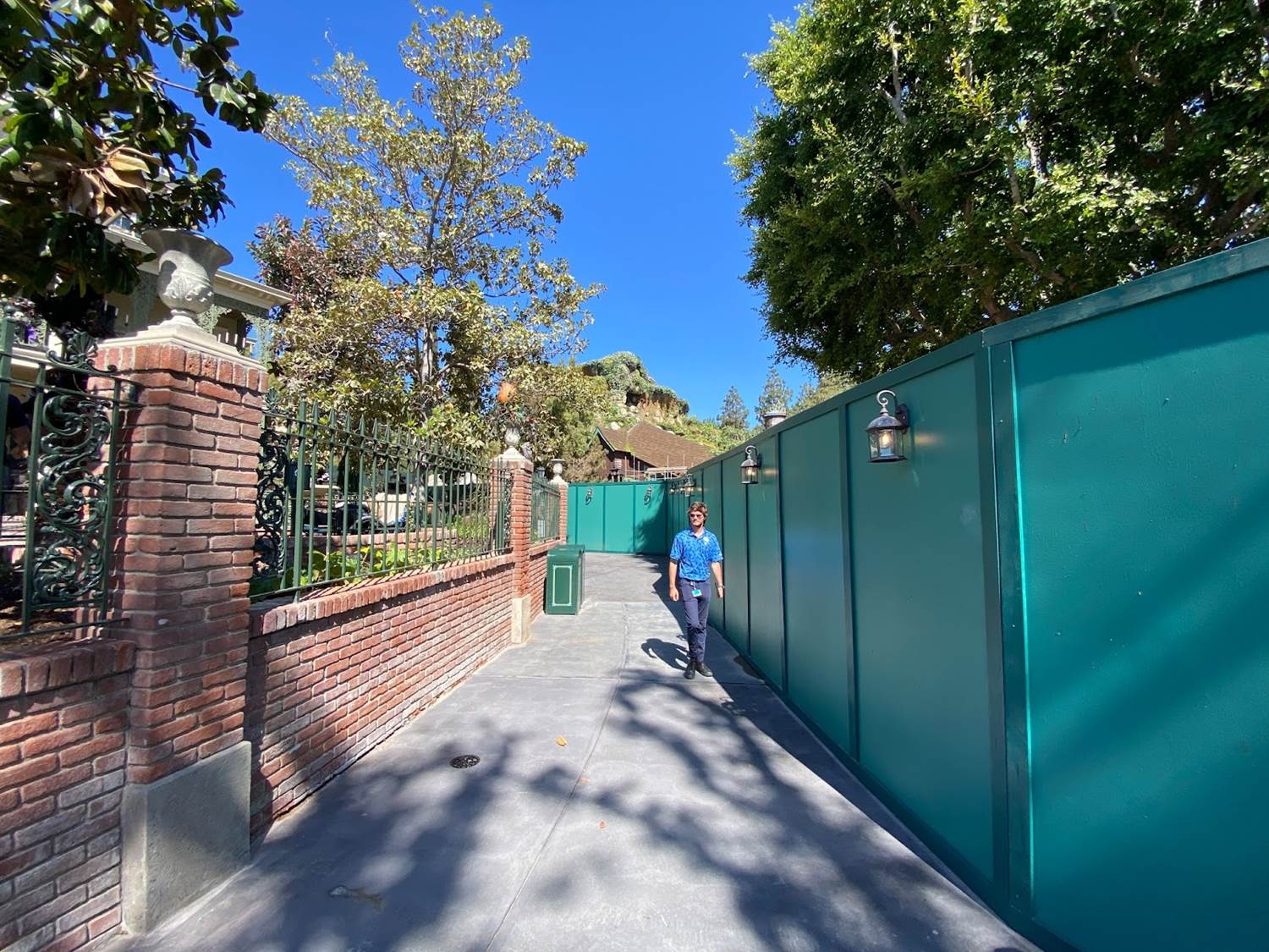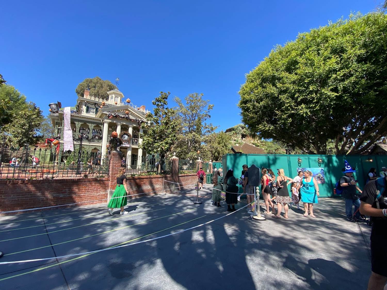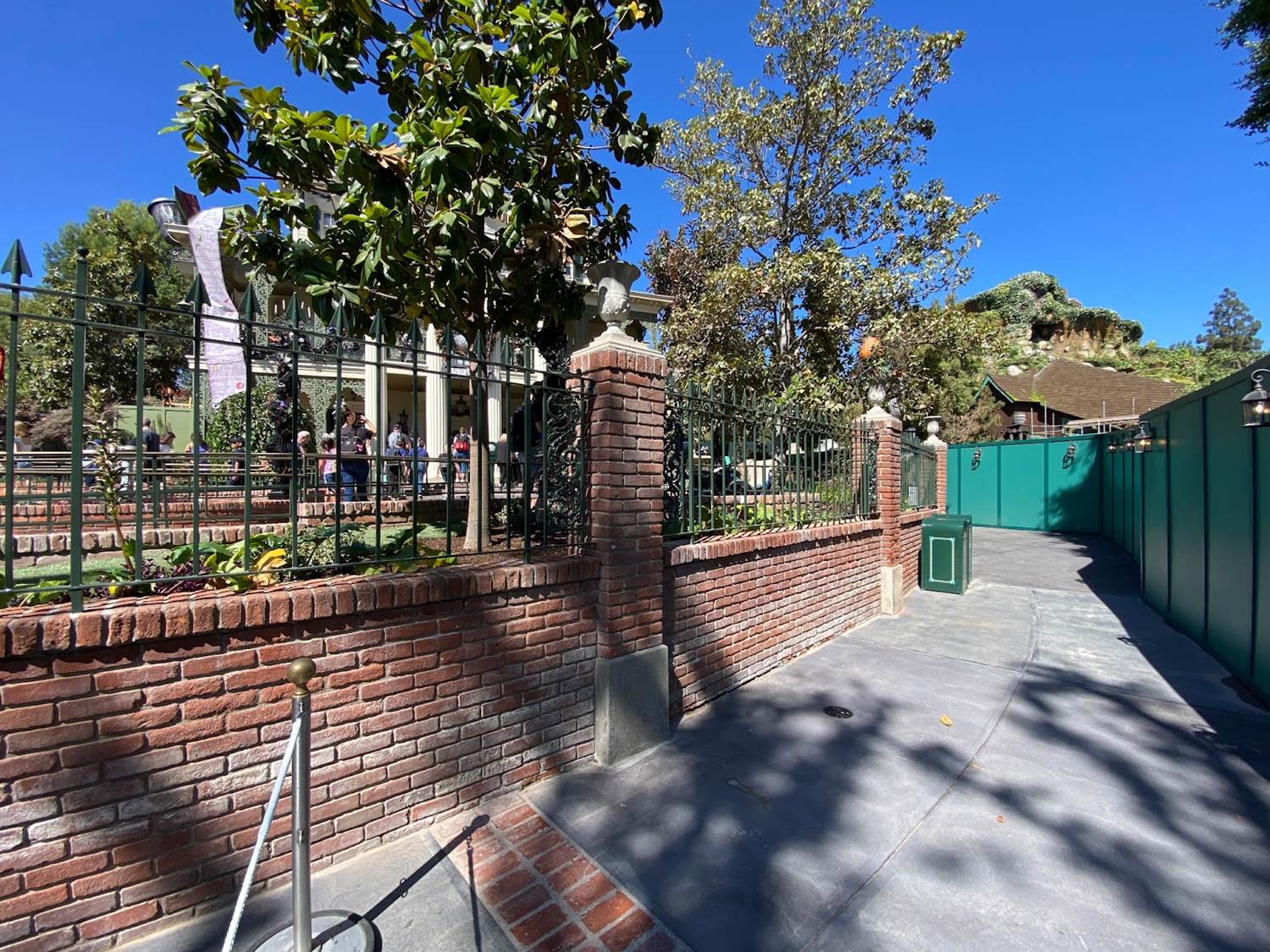 Guests head towards the former extended queue alongside the pet cemetery, before looping back to the Mansion.