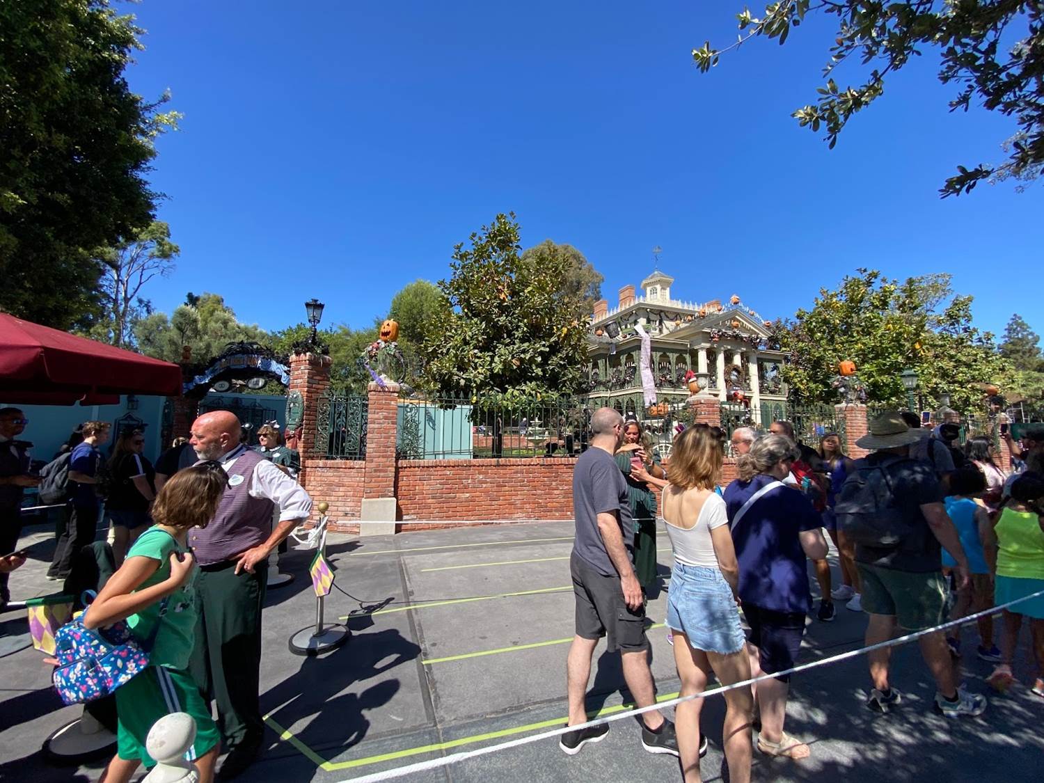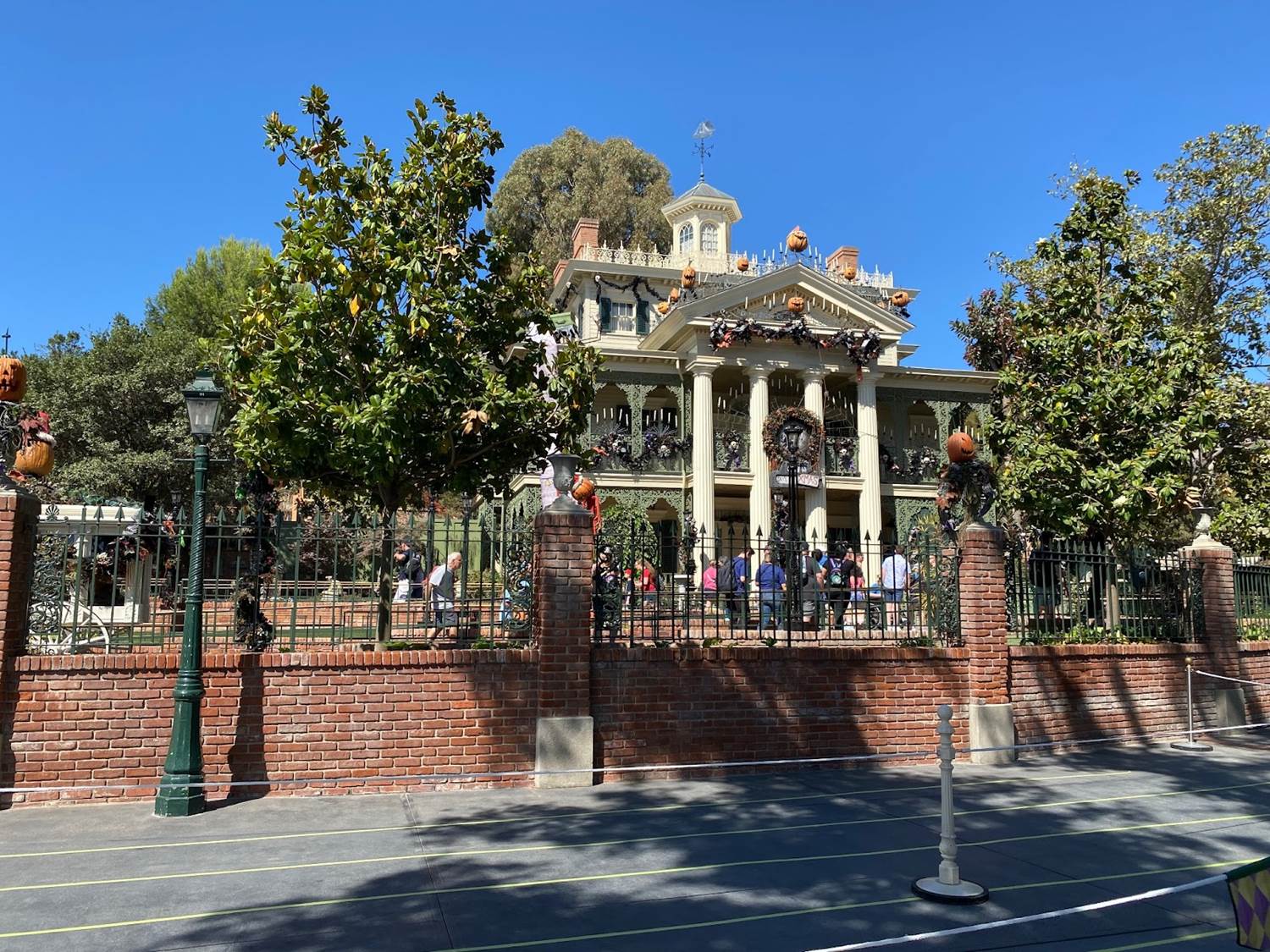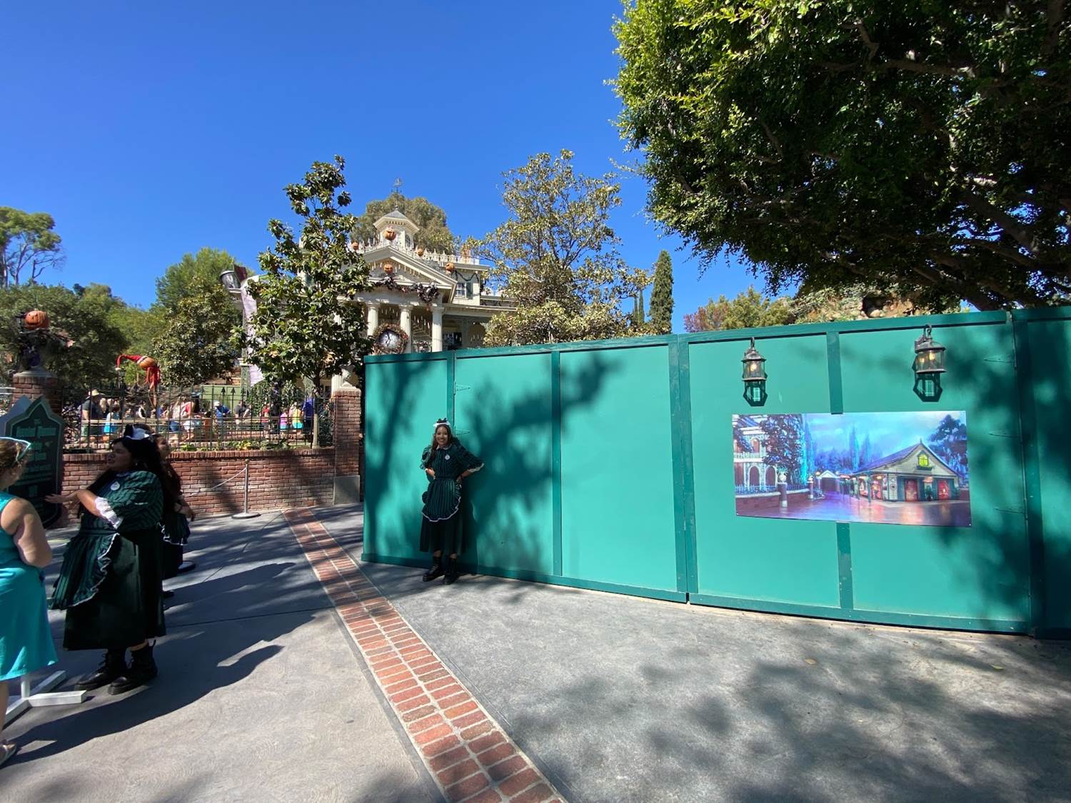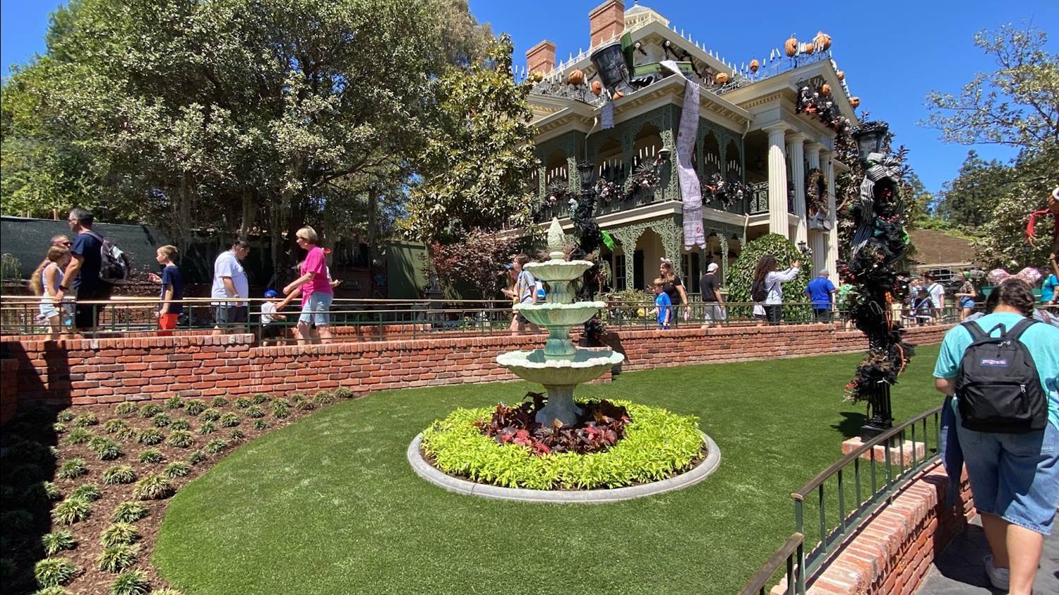 Guests head towards the former extended queue alongside the pet cemetery, before looping back to the Mansion.