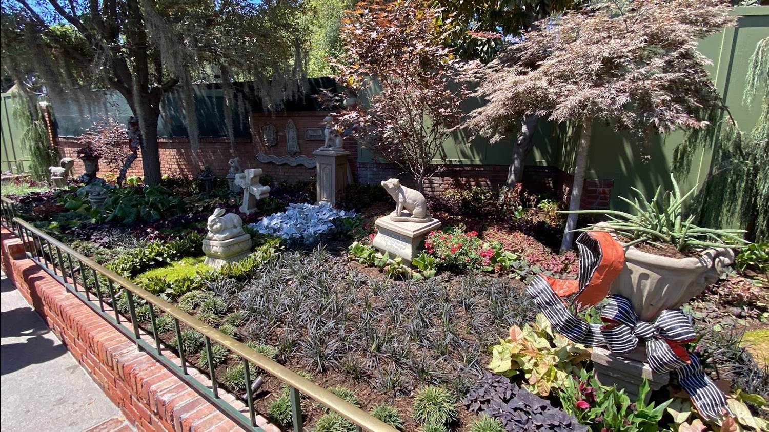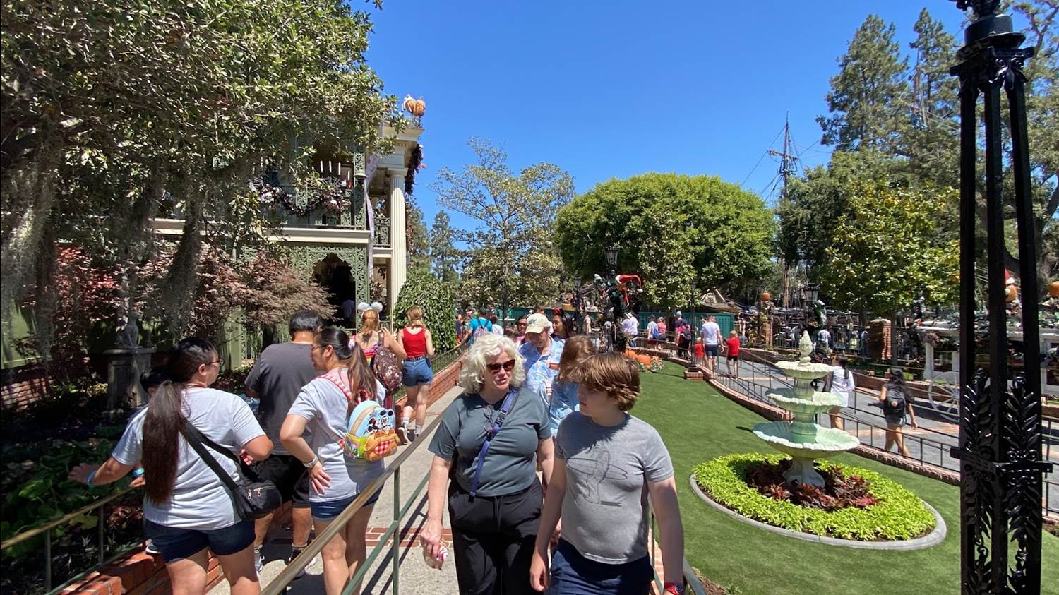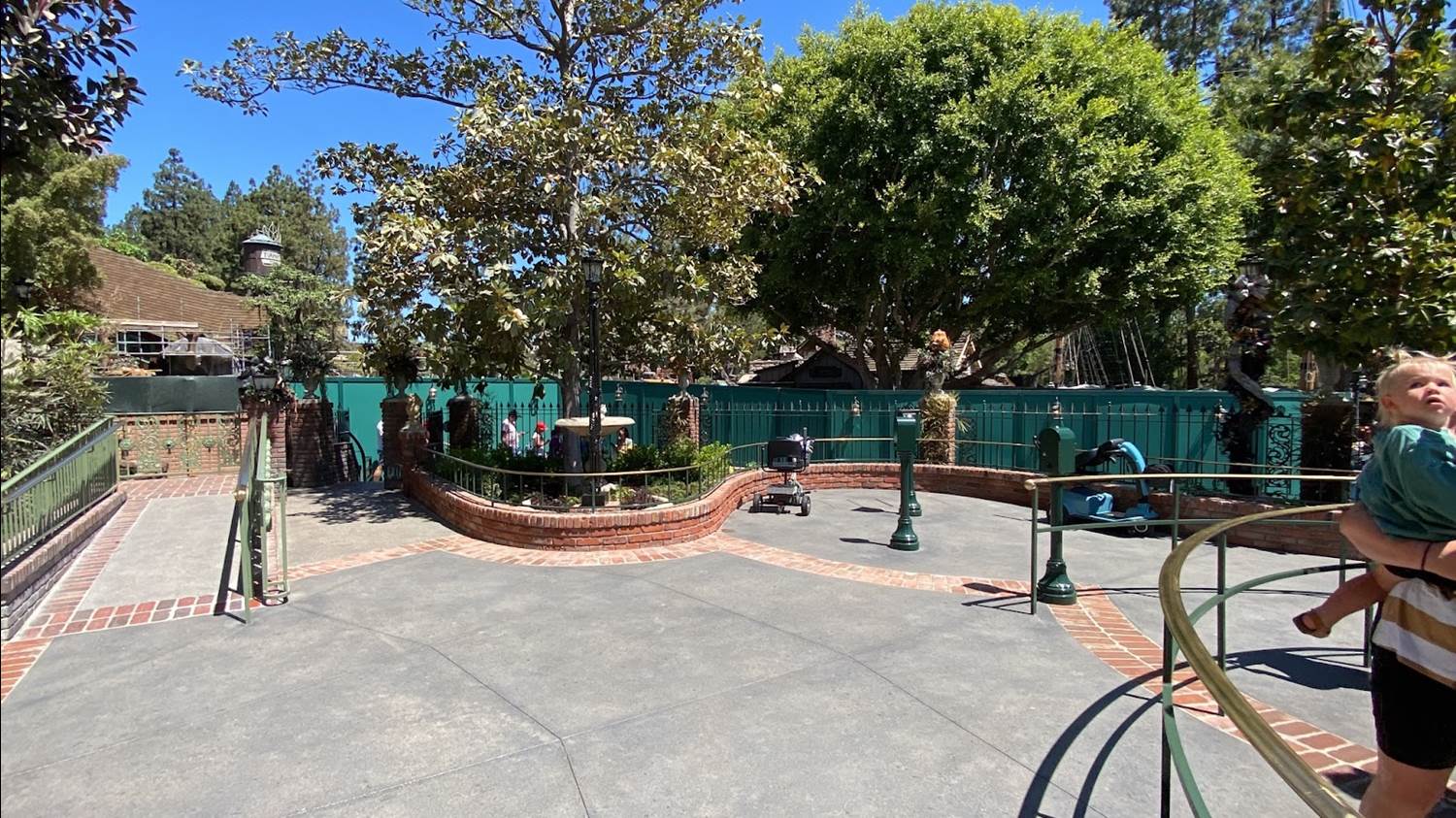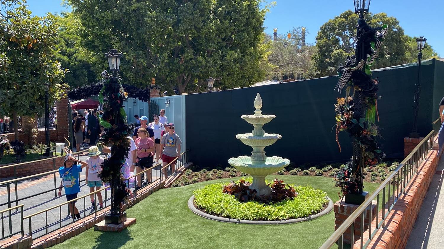 The fountain that was previously located near the New Orleans Square Disneyland Railroad station has been relocated to the queue, as a planter.